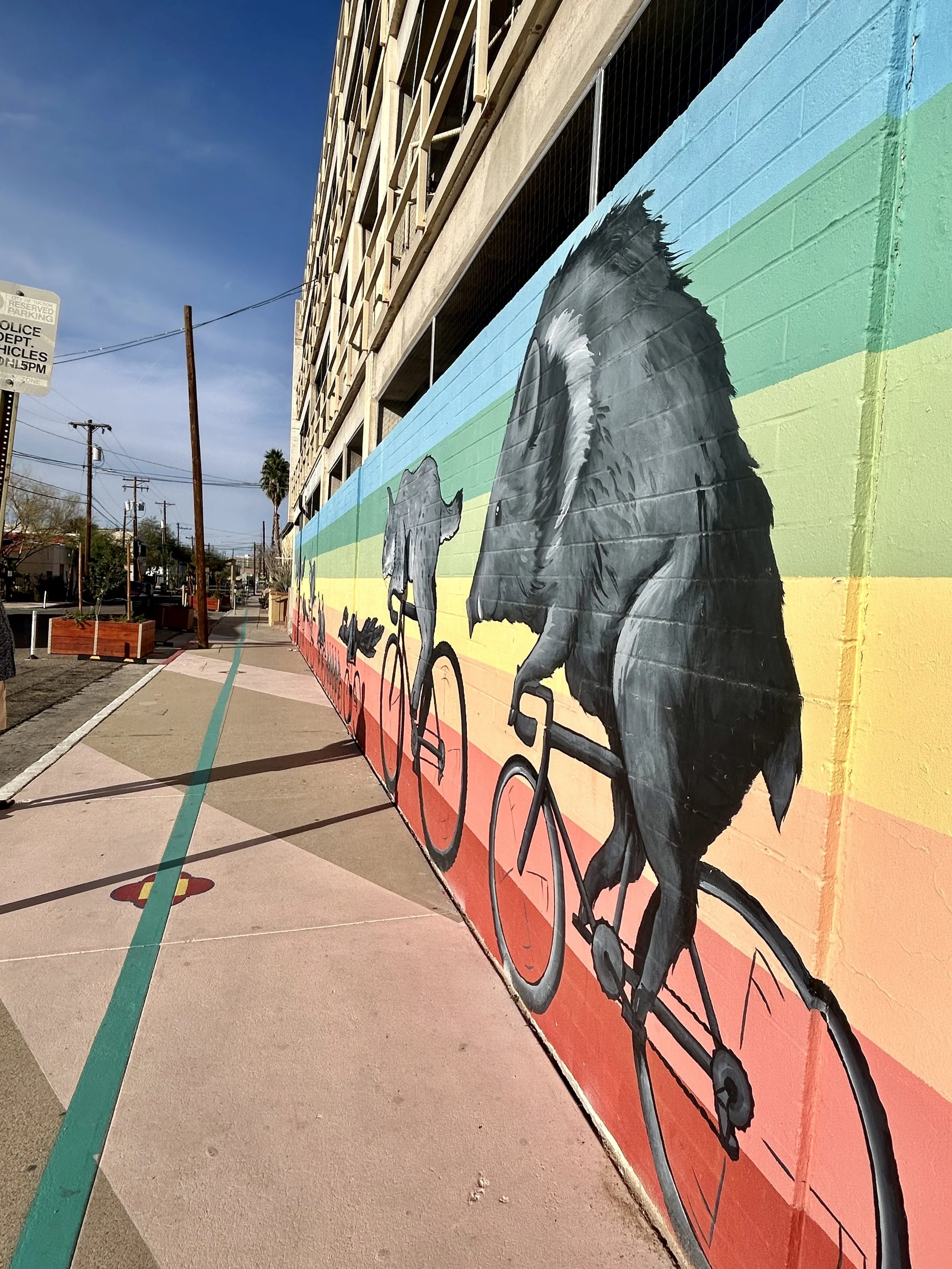 That night, we wanted to test out a new brewery. My research was not good, and the brewery ended up being just a small pub with $12 beers from other local breweries. We enjoyed our overpriced beers, and walked across the street to a restaurant and pub called Sonoran House. This was many times nicer and many times cheaper than the place across the street. We really enjoyed their ricotta cheese dip! After drinks, we went to head home. The night’s sky was blazed orange with a beautiful sunset. A quick reminder that sunsets in southern Arizona are one of the most special elements of living here. We wrapped up the weekend with a relaxing day exploring around downtown Tucson. Amity has been making fun of the fact that “downtown” does not look like any other cities, and that there are several other areas of town that could also be viewed as a downtown. Nonetheless, we walked around the city and looked at the different murals and artwork. For a city of half a million people, downtown is very clean, feels pretty safe, but there are not many people down here. Walking around at 1pm on a Monday, one would think it would be much busier, but it’s not. Maybe Amity was right, and this wasn’t downtown?!? Only time will tell.