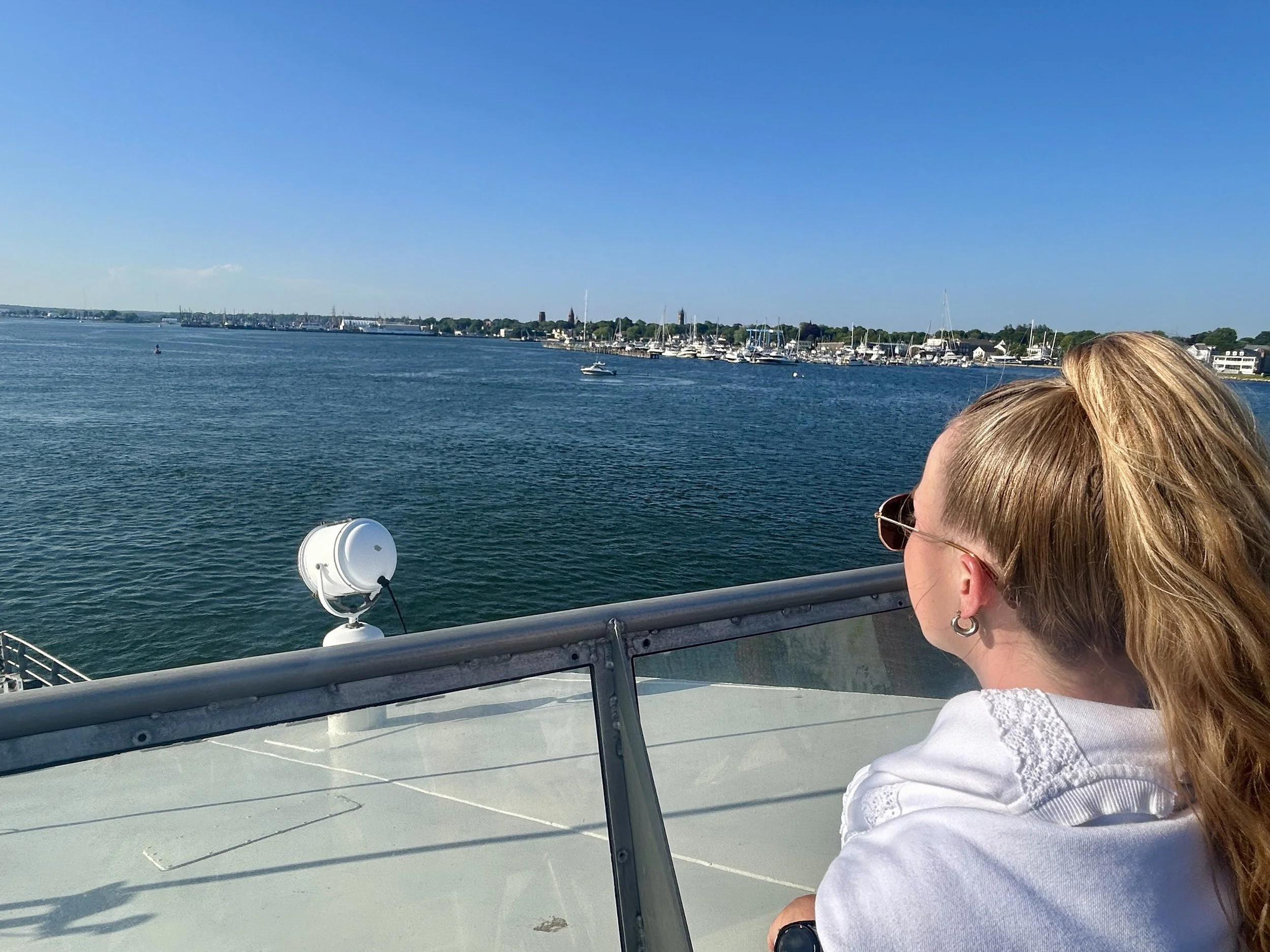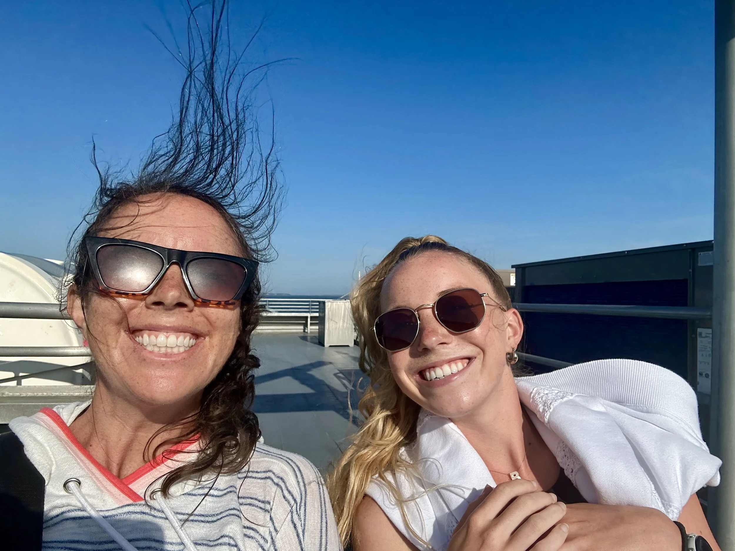 Since it was Sunday, we knew traffic getting off The Cape would be rough. We decided to stop for dinner at Fisherman’s View Restaurant, a place Amity and I had been wanting to try. It’s located right on the Cape Cod Canal, at the north end where it meets the bay. We didn’t have reservations but got lucky—we were seated immediately at a window table overlooking the water and a beautiful sunset. The menu leans heavily toward seafood, and we were proud of Briley for trying new things. She not only ate a raw oyster on the half shell, but also sampled the lobster mac & cheese. Bold moves that left us all smiling! Everything we had was delicious, and we perfectly timed it to miss the worst of the bridge traffic. We called it an early night, as the ladies were heading out the next morning for a ferry ride to Nantucket for an overnight adventure. I’ll let Amity take it from here.