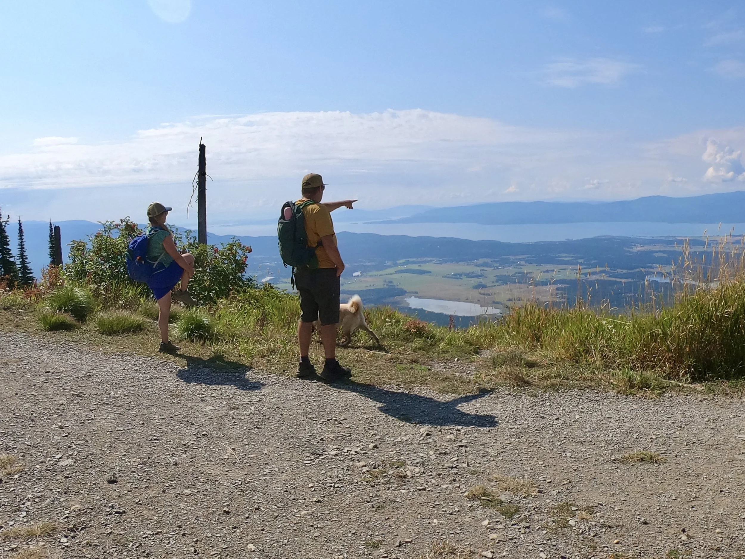 The next morning, we got our things together and headed over to “home number two” for the Montana trip—the Seefeldt’s house. Ashley and Brian rival the Moore’s in their hospitality and welcoming nature. Brian is also from Wisconsin, which made for a week’s worth of mutual jokes and sharing of Wisconsin stories and secrets. After getting our things unpacked again, we all piled into the car and headed up to the Jewel Basin to get into the mountains for a hike with their dog, Charlie. We were planning on doing the Birch Lake Trail. We have hiked along the mountains and into different areas of the Jewel in the past but have never done this hike. It was fantastic to get out in the woods with them. It’s been a long time since we have been in a place where we had to keep bear spray on us to be safe. It felt good to be wild again for a moment. Having Charlie around is always an added layer of security. She would have lost her mind if a bear were close by, and she explored more of the woods than any of us. The views are amazing along this hike. There is a saying, “You can’t eat the scenery,” when referring to beautiful views that can’t sustain life alone. In Montana, you truly can eat the scenery! As we were walking, we came across some massive huckleberry patches. We started out just picking a couple here and there and eating them. Charlie was loving it! She would crash through the bushes and then start chewing on the berries like a bear. As the patches got bigger and bigger, we all but stopped hiking and swapped out some sandwich bags to use as containers to pick and keep berries. Being early September, this was not expected at all! We thought we might see a couple of berries holding on here and there—not full, perfectly ripe patches for days. Montana welcomed us back with open arms on this trip! Then we made it to Birch Lake, which was beautiful. Brian knew a spot around the lake that gave us views of not only the tail end of Great Northern Mountain but also Hungry Horse Reservoir. Along this hike, we were able to see every major body of water in the Flathead Valley. Love little gems like this! With purple fingers, we rallied back to the car. It is always a pleasant thought that there are cold beers waiting for us at the car. It was even better to be back at the car taking off our packs and enjoying them! That night, we went out to the Whitefish Lake Restaurant at the golf course. This spot is iconic from our Whitefish days, and the dinner put the cherry on top of an amazing day!