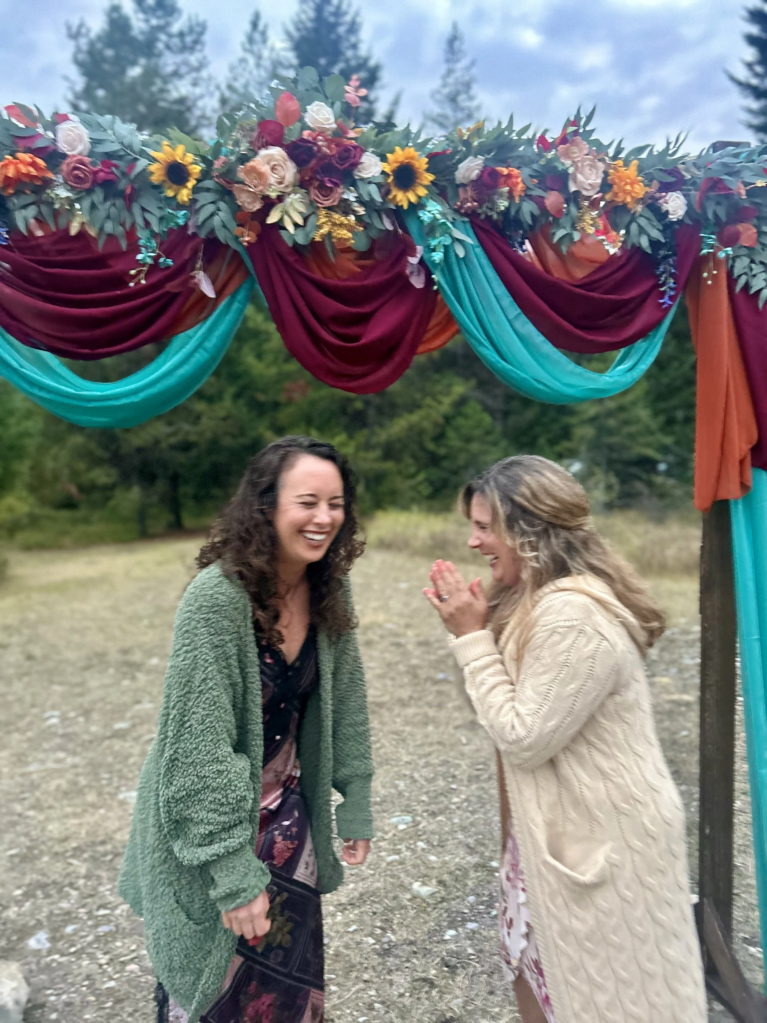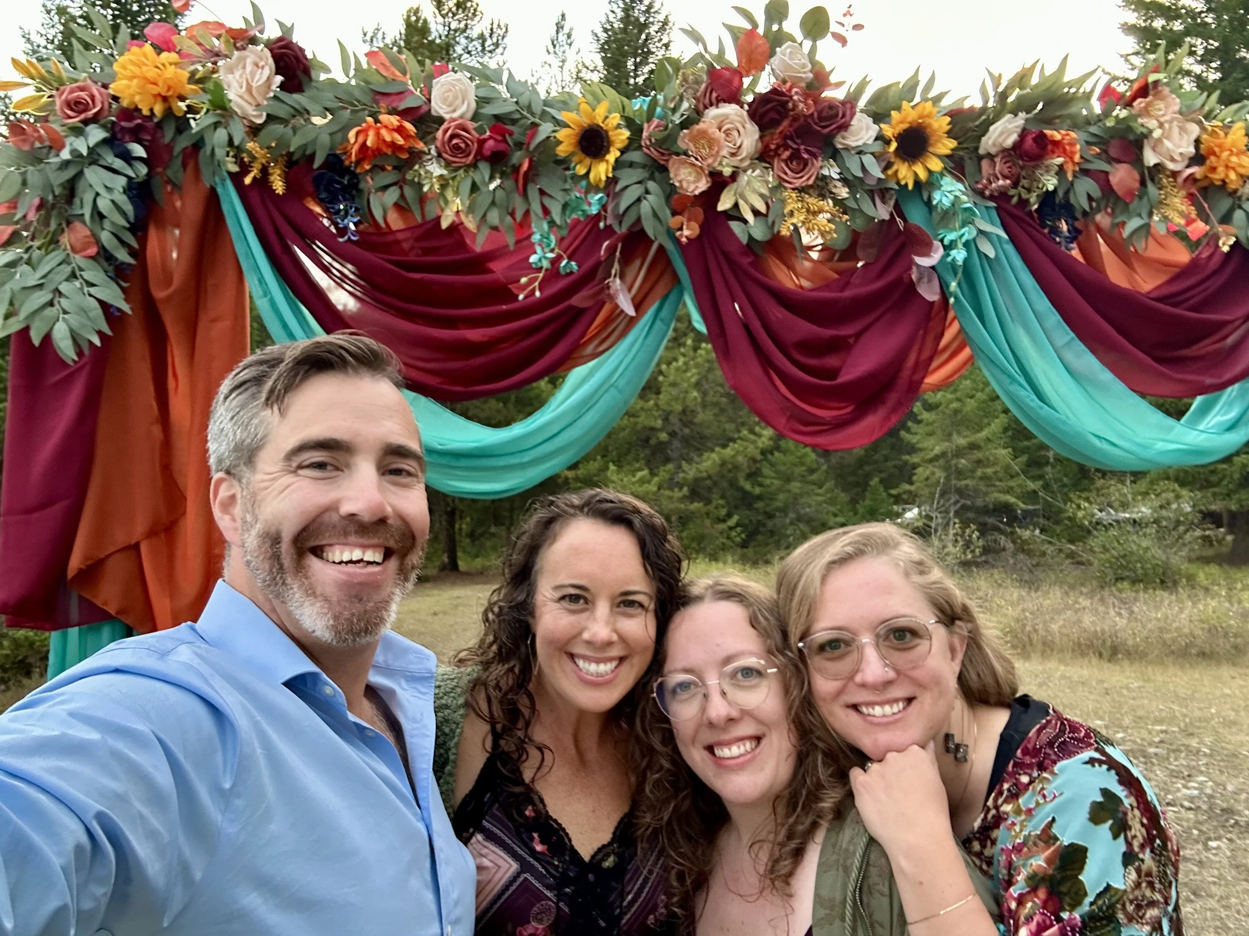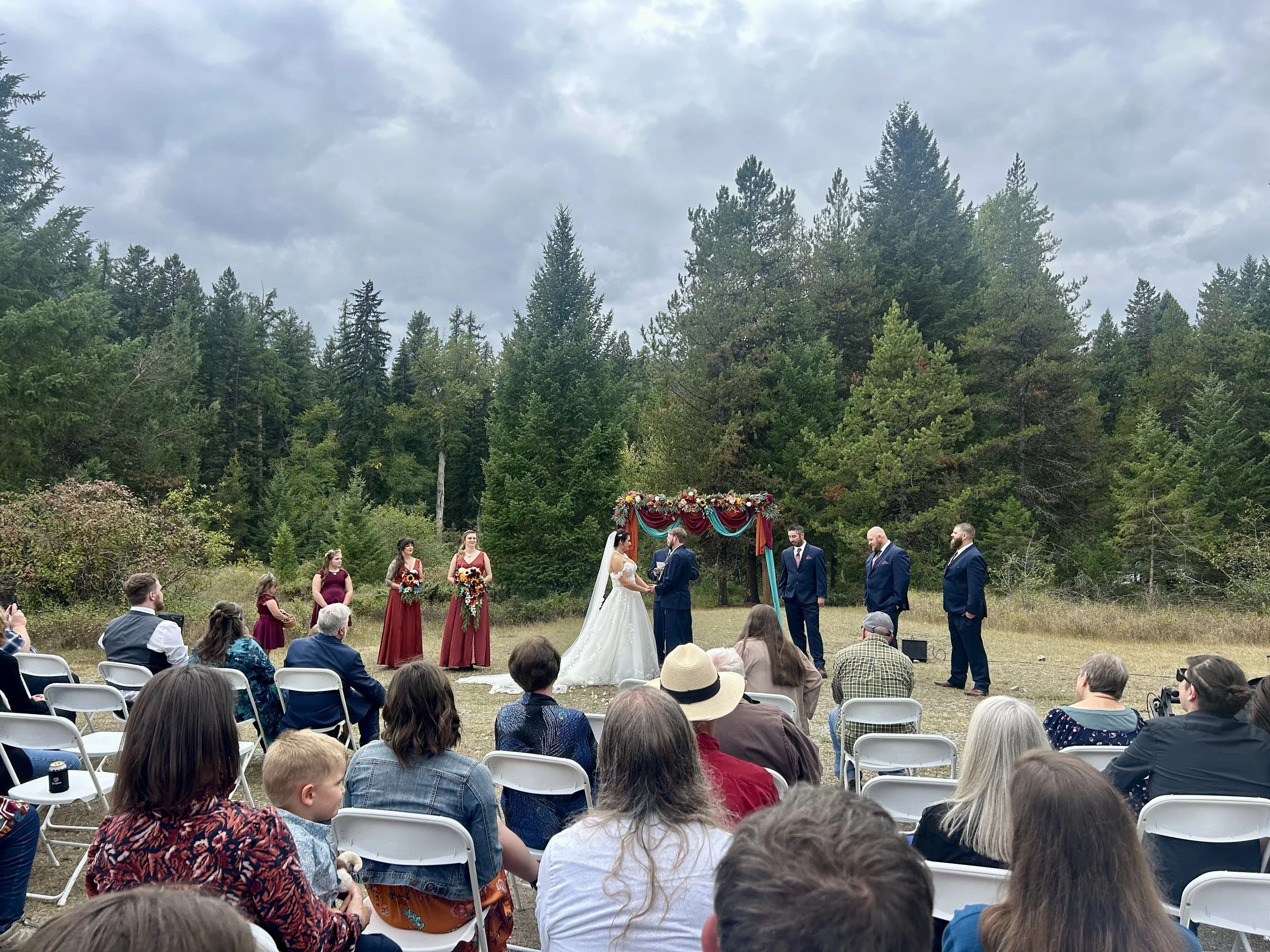 The next day was the big day we had planned this trip around—Mike and Dani’s wedding day! The Seefeldt’s were also going to the wedding, which made getting there and back so much easier! We all met back up at their house to get ready and head out to the festivities. The wedding was out at Tally Lake. This is one of my happy places in Montana! I have been coming here since I was a child, and Amity and I have many memories of camping and swimming in the lake. The moment we walked up, we were greeted with so many familiar faces from lives past. The Schumans, Randy and Lee, were among the first. Then we found Emma and Abbie, and we couldn’t have been happier to spend the night with them. Fiorella was happy to have some familiar faces show up, as Bobby was in the wedding and away taking pictures. We all had a great time catching up, telling stories, and celebrating the fact that we were all together again! When I had the first chance to, I headed down to the lake to surprise the groomsmen and Mike with my presence! These are some of my best friends, and getting back together with them was the final piece of this Montana adventure. I couldn’t have been happier! We shared Mike’s last moments before he was a married man at the lake. It was a special moment.