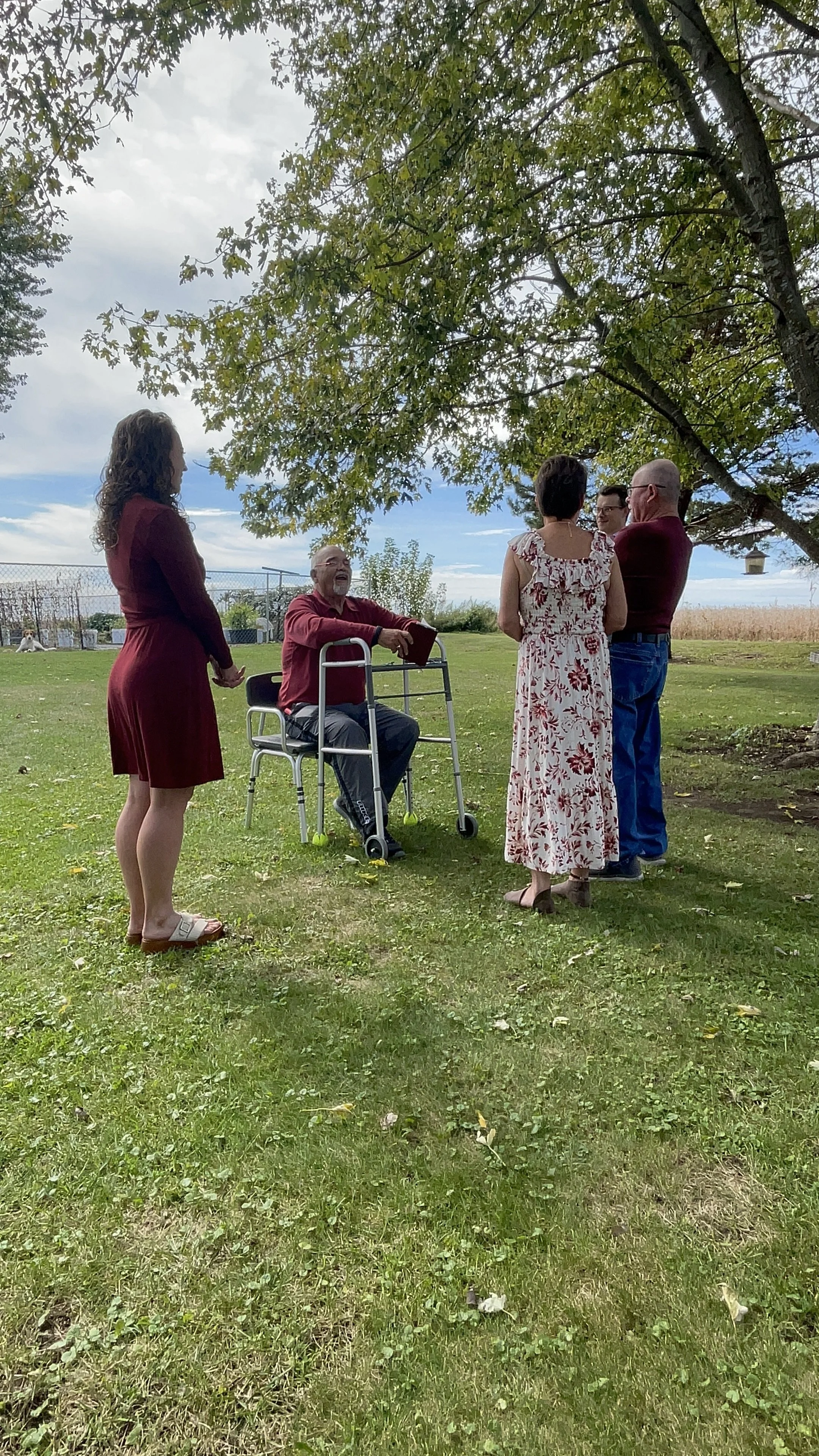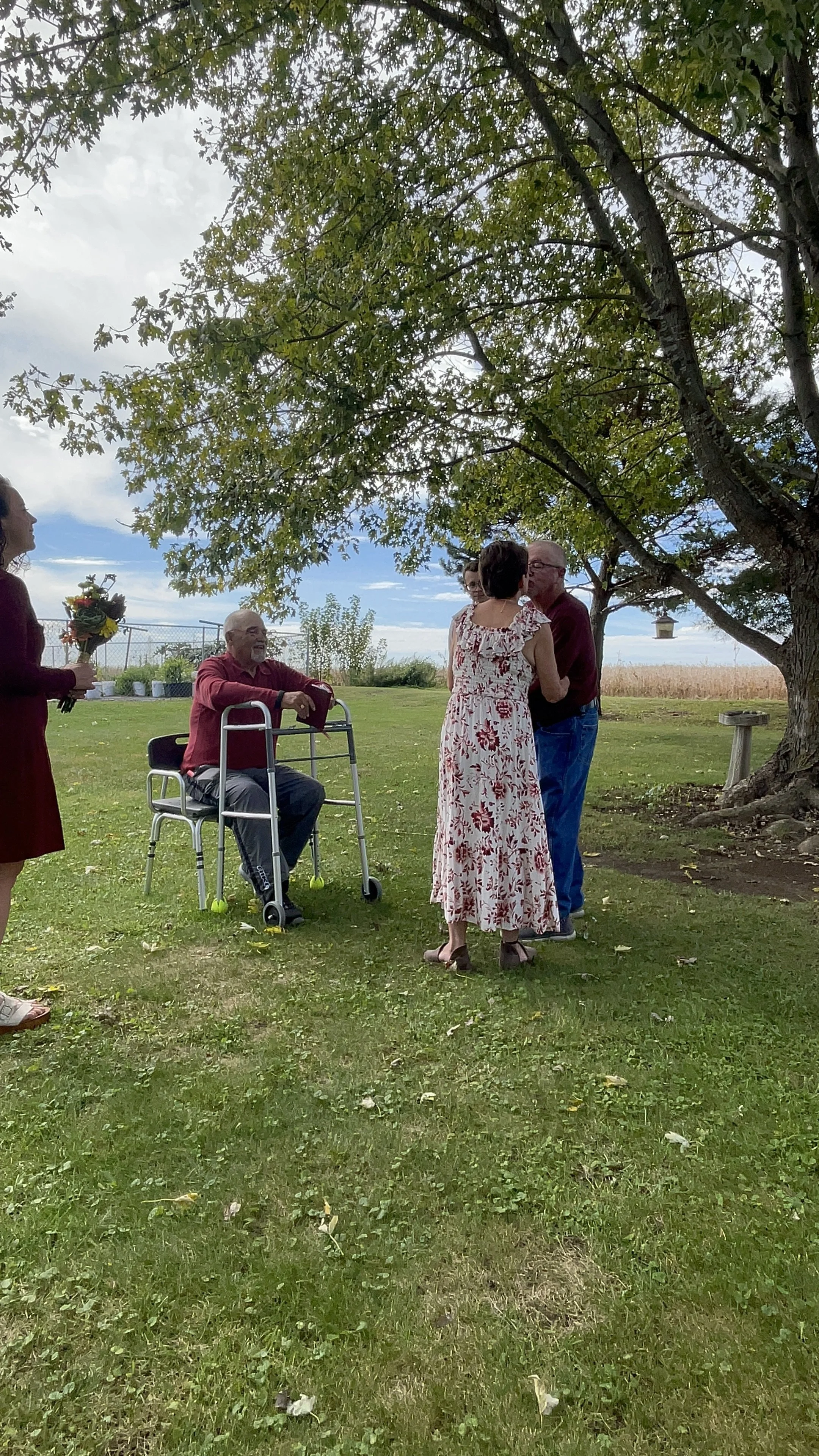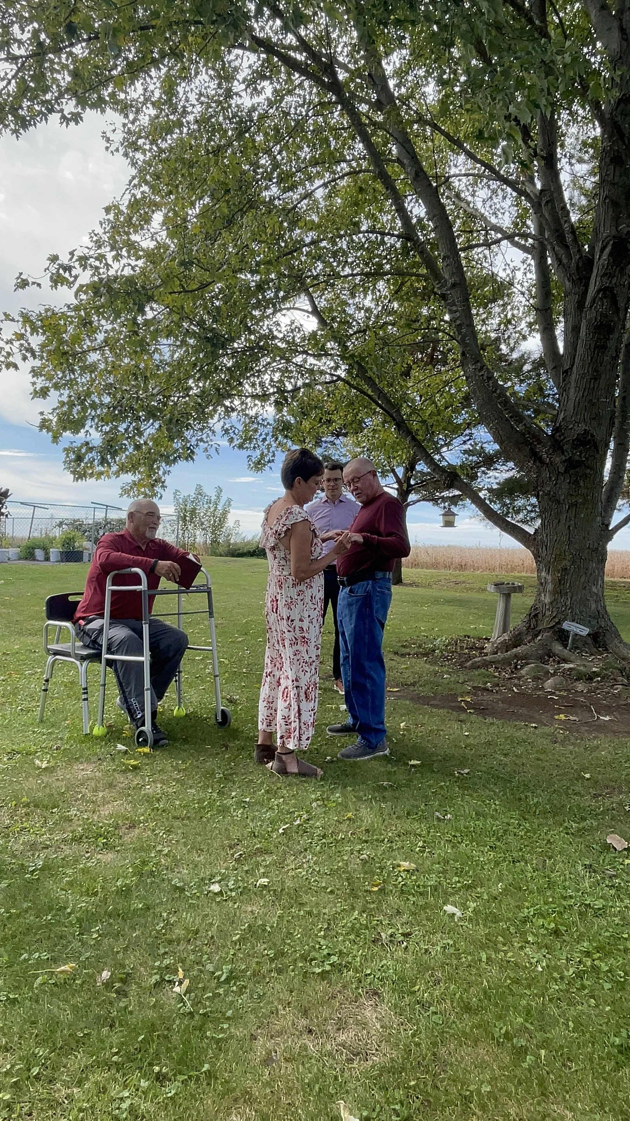 Saturday was the day! Not only did we have the 20th Year Reunion that night, but we also had Mike and Karen’s wedding in the middle of the day. Mike’s goal was to keep things simple, do it in the backyard, and have things wrapped up in time to watch the Missouri Tigers football game. They accomplished all of this, but did it in the most touching, loving, and perfectly “Mike and Karen” way! Mike tried to keep his emotions at bay, but they spilled out a couple of times in the most authentically loving and heartfelt ways. Karen wore a dress and looked amazing!!! Amity and Asa were their “Best Man and Maid of Honor”. Their dog, Gunner, stood guard, keeping the local cat situation at bay during the ceremony. We are very happy for the two of them to make this step together, and now we have a new step-mom: Karen Sparks! Following their ceremony, they gathered some friends at Woody’s for a little reception party. We were able to stay for a short time before we had to head out to get ready for the reunion.