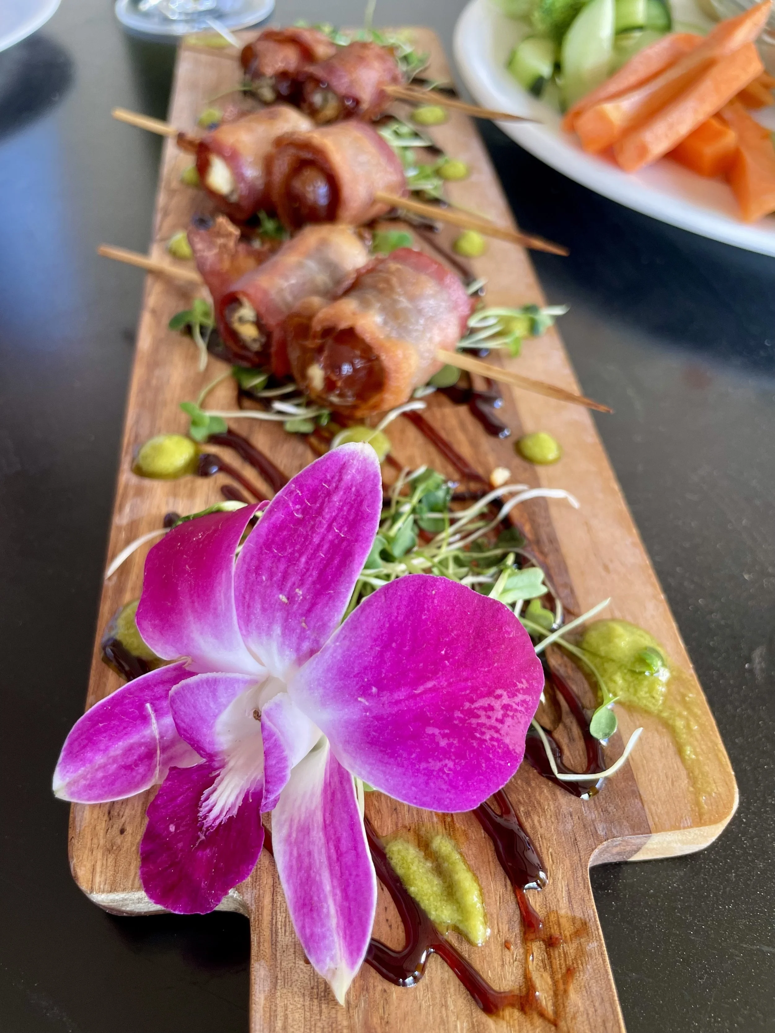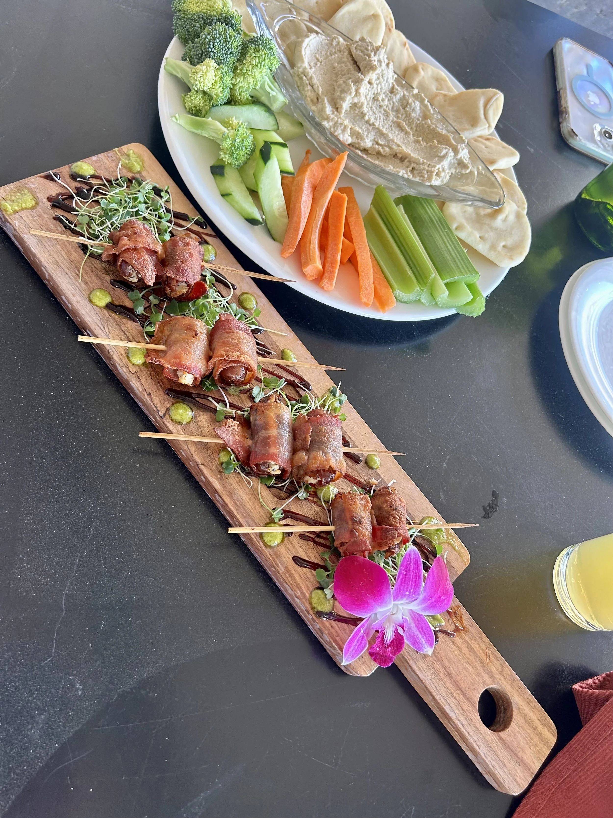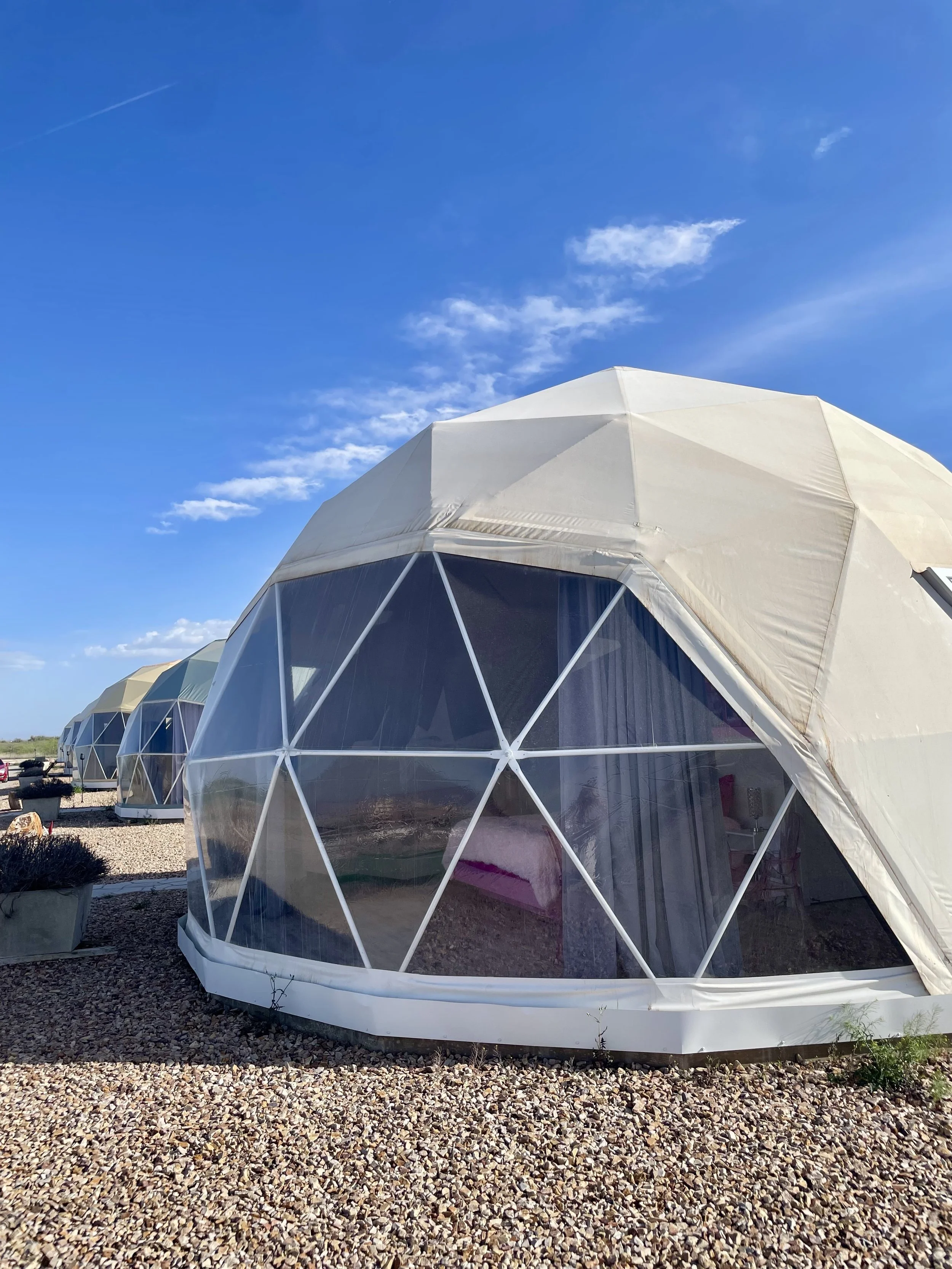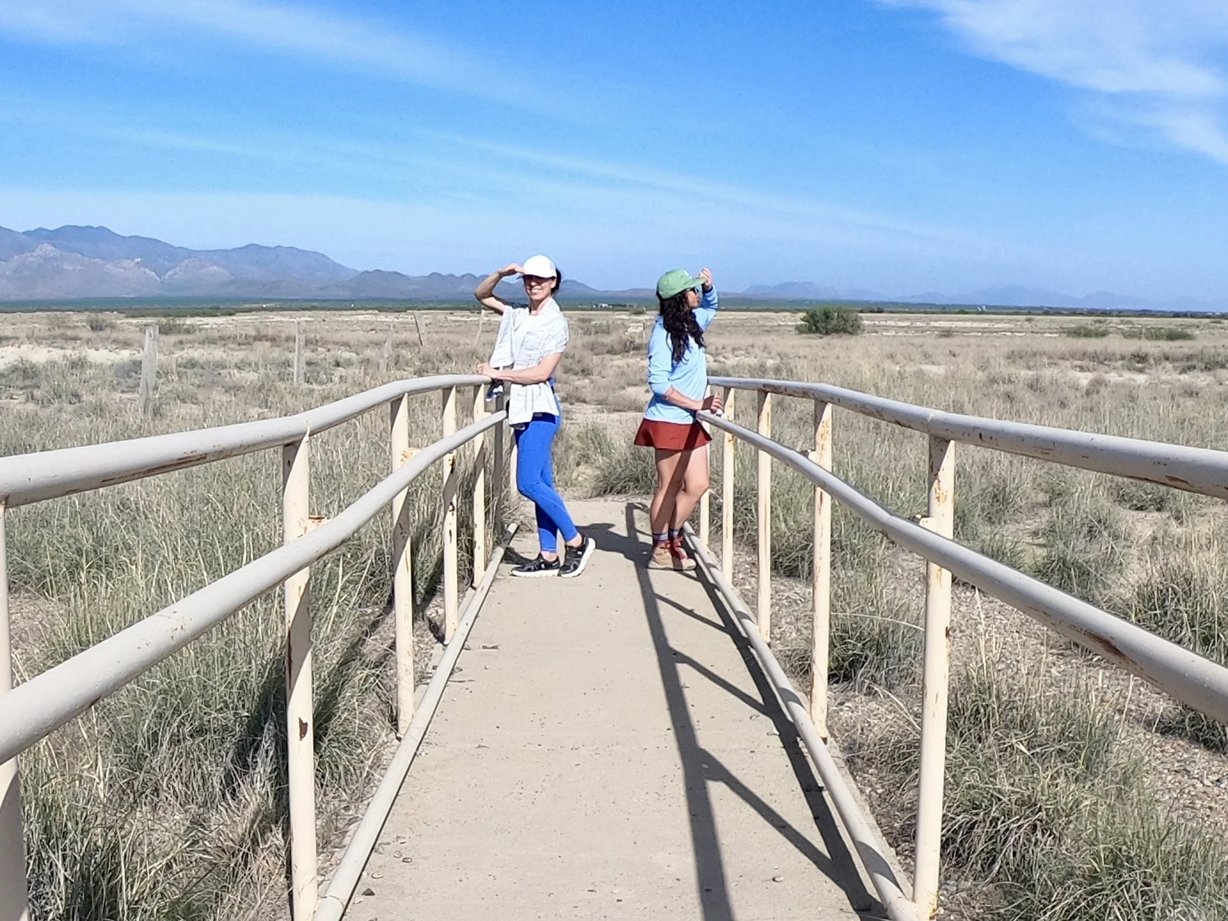 Once we got to Wilcox, we wanted to get our camp set up before we headed out for dinner. Amity had read that the KOA was close to the highway, which wouldn’t be the first time we have been at a KOA like this. The bigger shock was that we were right between the highway and a very large interstate gas station and overnight big-rig parking lot. The gas station had a very large (30’x30’) LED sign right above the campground, which proudly shined LOVE’S and the outrageous gas prices. I have seen a lot, but this was something on a whole different level! Long story short, this KOA should not have campsites and should just do RVs! After getting things set up, we headed to another reason people travel to Wilcox: vineyards! We had a reservation for dinner at a vineyard called Tirrito Farms. We had a little time before the reservation, so I found a quick trail we could walk out to an “animal viewing area.” Wilcox is right next to a massive dried lakebed called the Wilcox Playa. The hike was more comical than enjoyable. We walked through some areas where cows were grazing and eventually got out to a spot where there was a random bench in the middle of nowhere. The best part about it was that we saw two signs there. The first said “The Most Beautiful Views In Arizona,” and the second said “Do not walk out on the dry lakebed.” This spot couldn’t be further from the most beautiful spot in Arizona. I think we have all seen better views of nature in downtown Tucson. We learned that they don’t want you to walk out onto the playa because it is littered with unexploded military munitions from training and testing they used to do out there. Kind of sketchy, but BEAUTIFUL! HAHA! Once we got to Tirrito Farms, we were pleasantly surprised by the area. They have small domes you can rent, a nice pond, and lots of space for guests. We loved dinner! Everything was delicious, and knowing that it all came from this farm was really fun. After dinner, we walked around the area, and I met a farm cat. We became friends! After chasing the sunset down to the playa walk we did earlier, we headed back to our LED-illuminated campground. Before heading to bed for the night, we sat around chatting. At this point, we all saw an owl sitting on a post under the LOVE’S sign. I tried to get a photo of it before it flew away. A little bit later, we saw another owl, or the same one, land in a tree next to us. We were impressed that it was hanging around such a loud and bright area. Pretty cool to see some wildlife in a place like this! That night, we all got a little bit of an LED light tan as we slept under the big bright light!