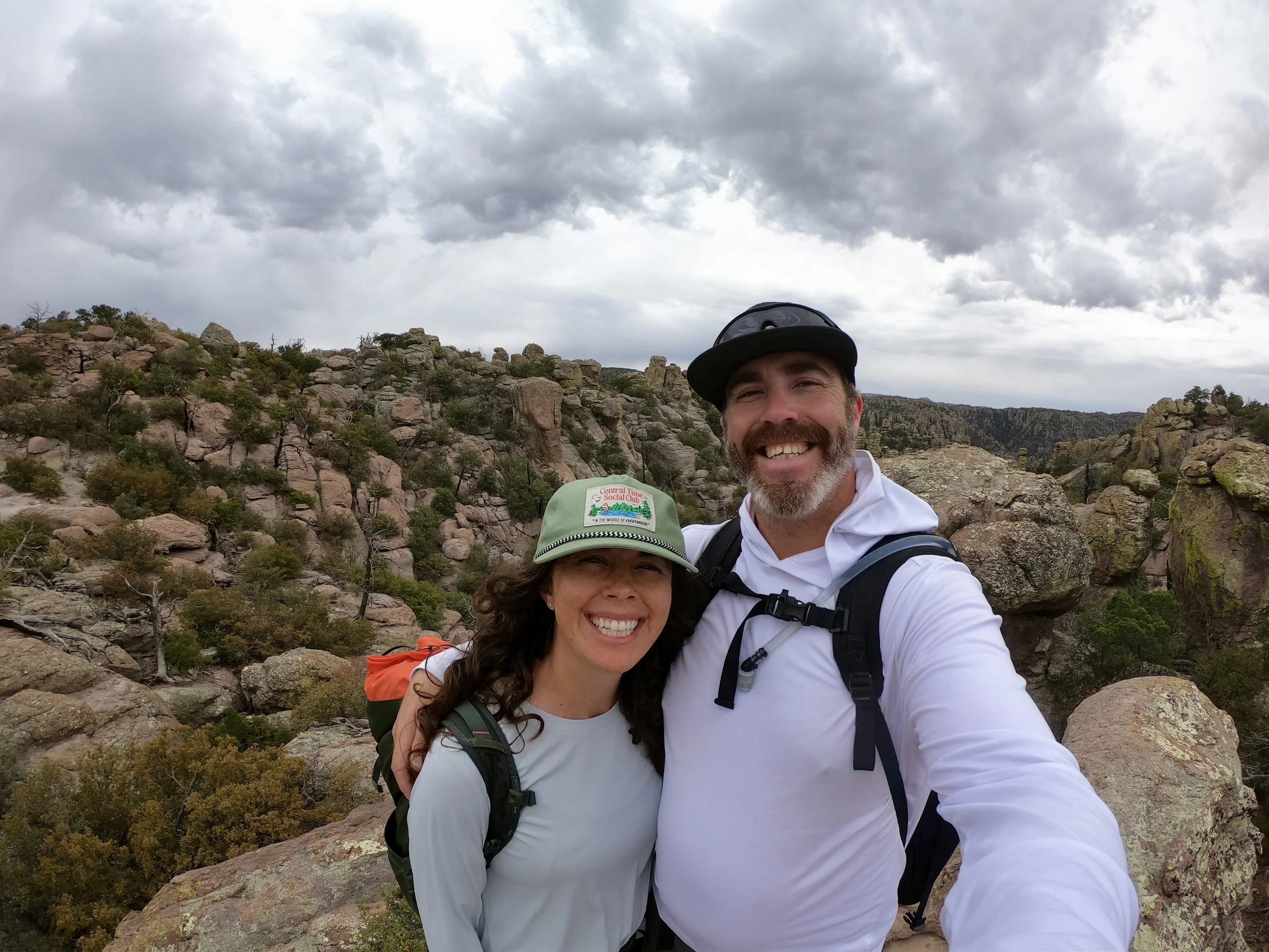 As we made our way out of the loop, we made it back to the original trail and headed past some of the larger balancing rocks in the area. It is crazy that we are living in a moment where such geological features exist for us to observe! As we continued along the trail, we passed the old woman again, and we all thanked her for enticing us to add the loop to our hike! The rest of the trail worked through some high-elevation desert zones. We were surprised by the lack of people along the trail. We only ran into around six other groups all day long. This area is still under the radar enough that it is not overrun with people yet. That might end soon, as the organization overseeing the national monument has made plans and gained government approval to make the Chiricahua National Monument into the newest National Park in the country. While that will be cool and give it funding for more trails and maintenance, it will put it directly on the map and make it a tourist target! We are very happy to have been able to see it in the way and at the time we did! We eventually made it back to the trailhead where we started. The only problem was that Amity and I forgot to get a picture of us together with the rock formation. So, we added another half mile to our hike and continued on the trail to some of the first formations we saw in the day. After snapping some pics, we made it back to the cars and completed an absolutely EPIC hike in Chiricahua National Monument!
