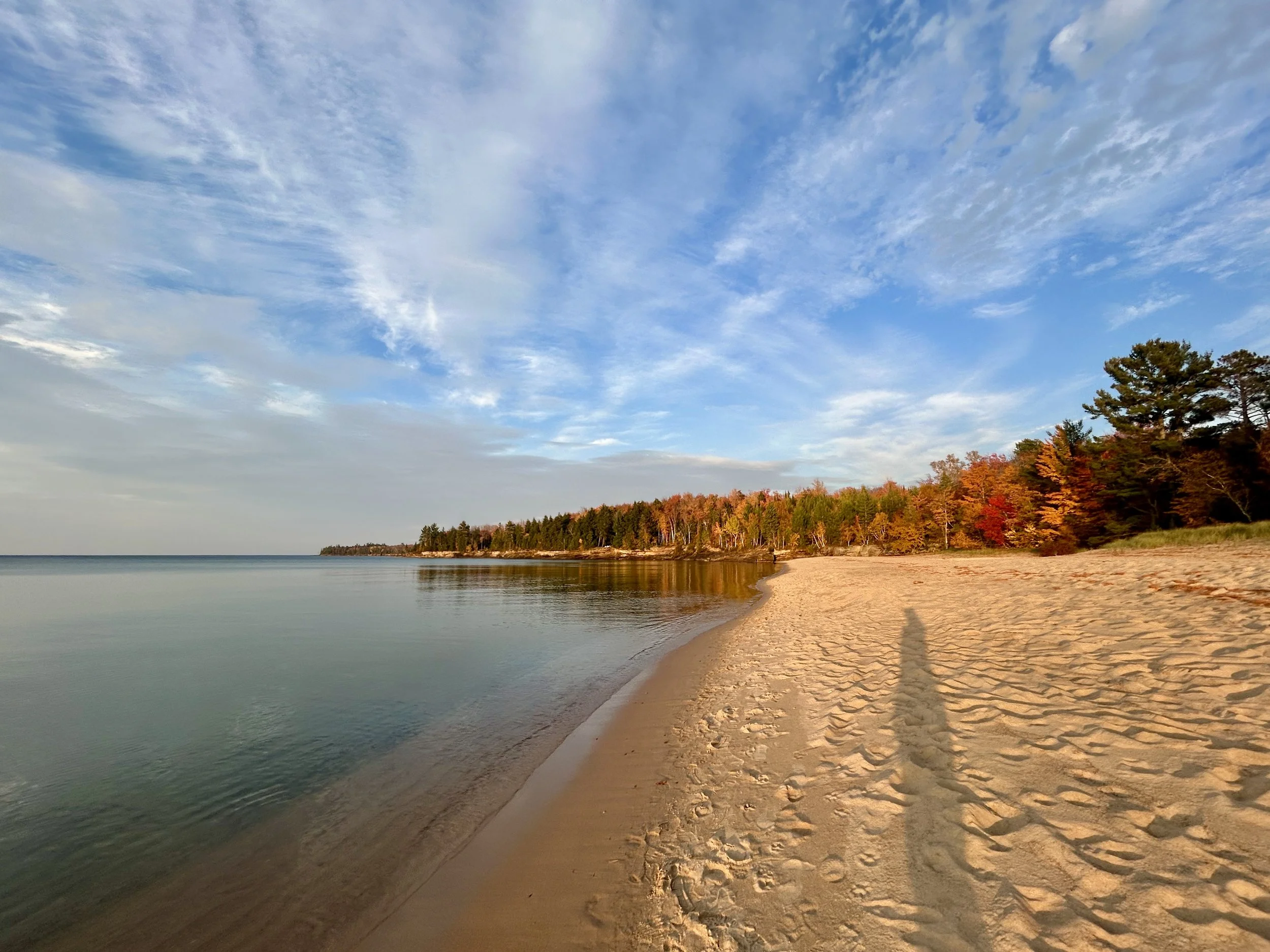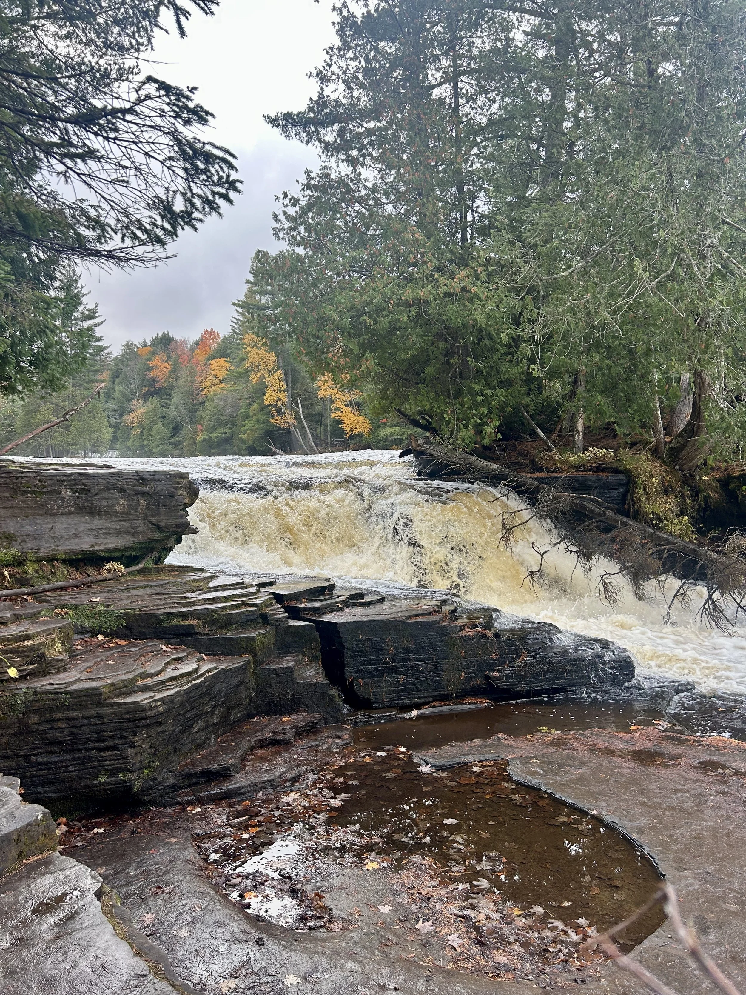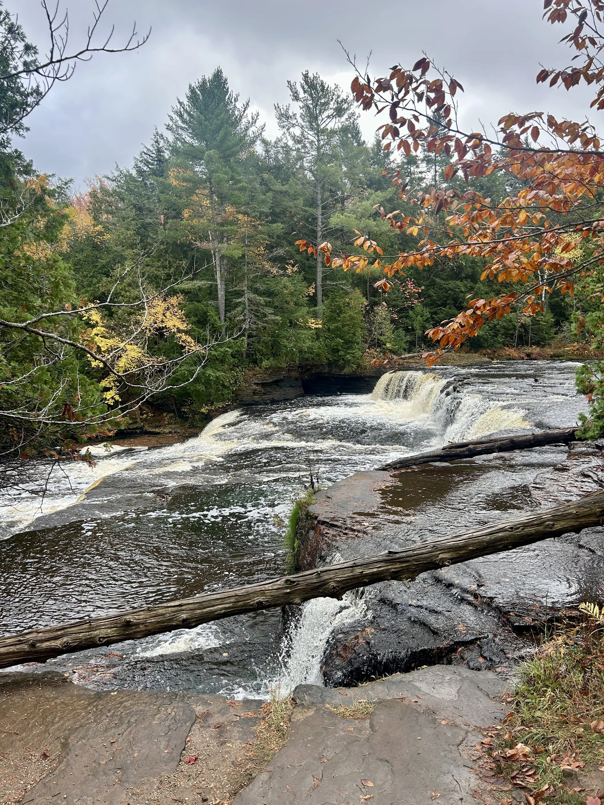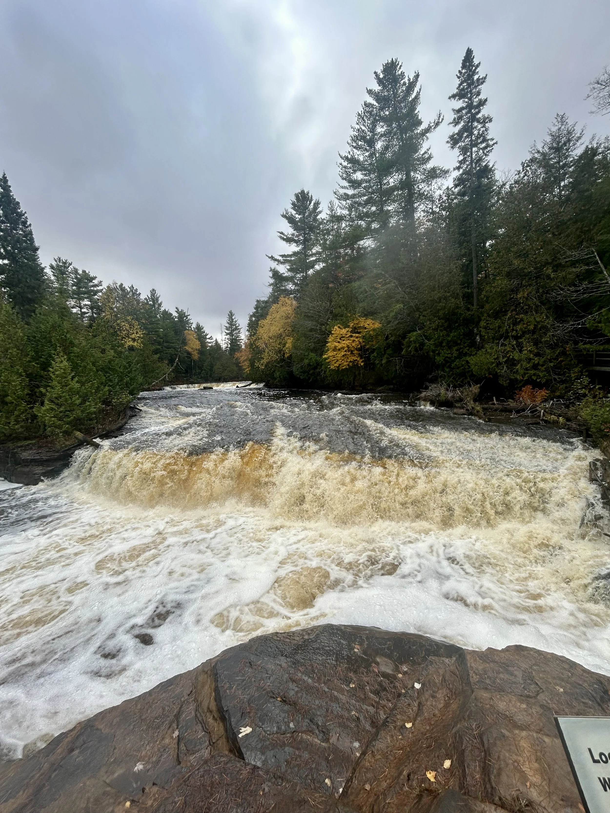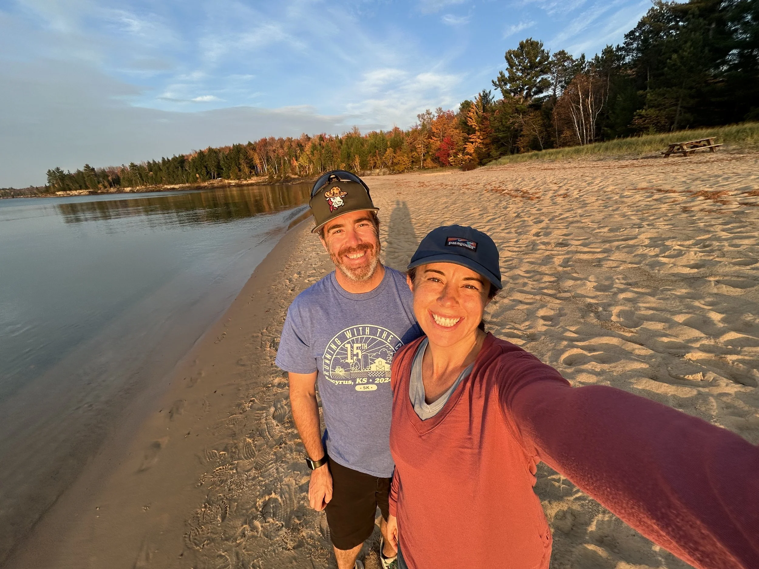 Ever since the first day we landed in Wisconsin, we have had the plan to take a weekend trip up to Michigan’s Upper Peninsula. It is a very unique area of the country. It’s more Wisconsin than Michigan, with an Irish and mining history and some of the most scenic and remote areas of the continental United States. We set our sights on three areas to explore. We wanted to explore the Lake Superior shoreline, as that lake is unlike anything else we have seen. Amity had found a waterfall that runs a rich copper-amber color, and we wanted to compare how the fall colors on the U.P. compared to the colors we explored last year in New England. We packed our car full of camping gear and set out for a fall adventure “Up North” in the U.P.