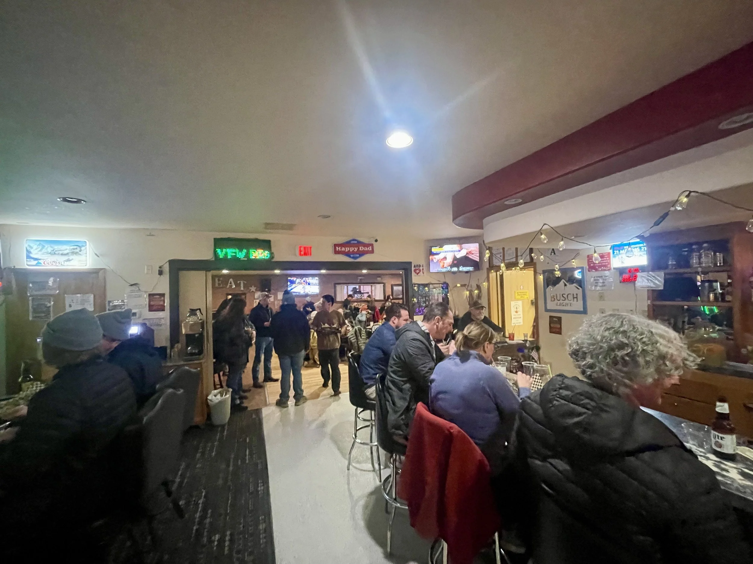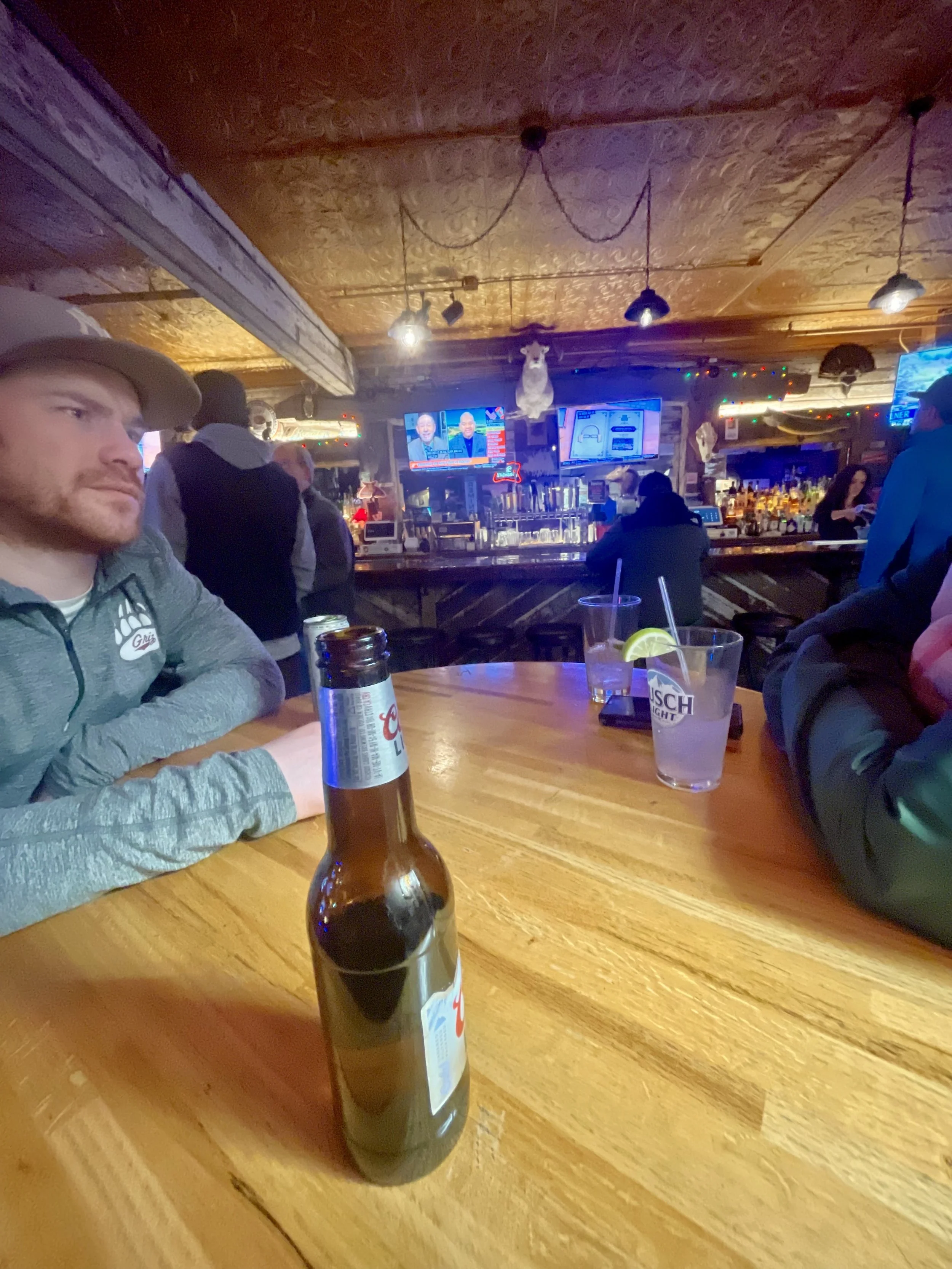 The last day of skiing was a really slow effort to get up there. The snow was pretty firm, and we had some morning work to do. Once we got up there, Craig got called into some work stuff. I ended up skiing most of the morning with Big Dave. He told me that day he has had a goal to ski Connie’s Couloir every day. With the low snow levels and hit-or-miss ice, I was slightly hesitant to go in, but overall it was pretty good! Craig eventually met back up with us, and we took a few more laps before we felt like we had skied everything worth it. We made our way down into town and decompressed that afternoon. I didn’t have much planned for the last night but did want to get a chance to see an old musician friend who was playing at the Great Northern Bar that night. We made a quick stop there, chatted with some old friends, before heading over to the Remington to meet up with Tori and see Shane one more time before I left.