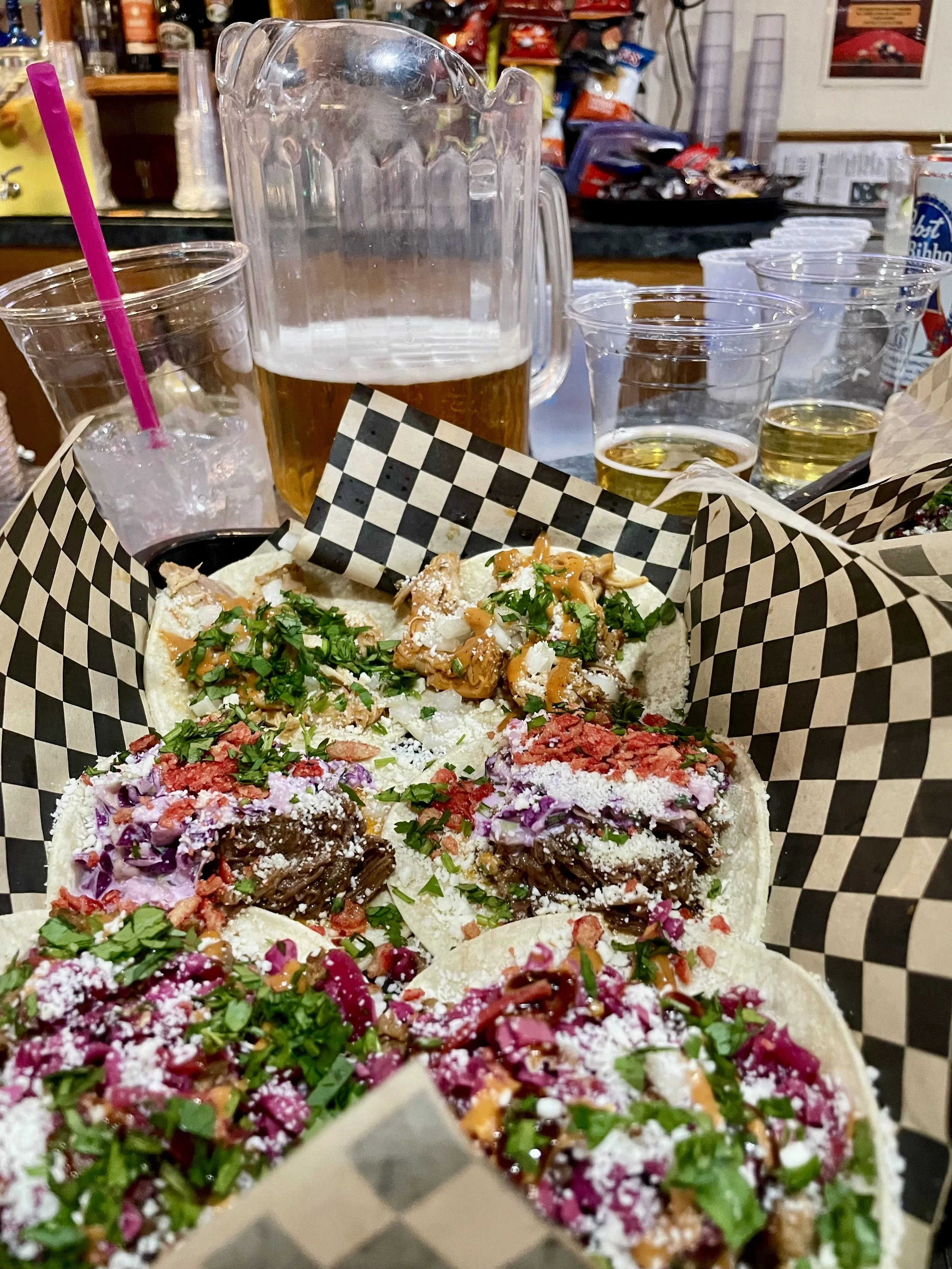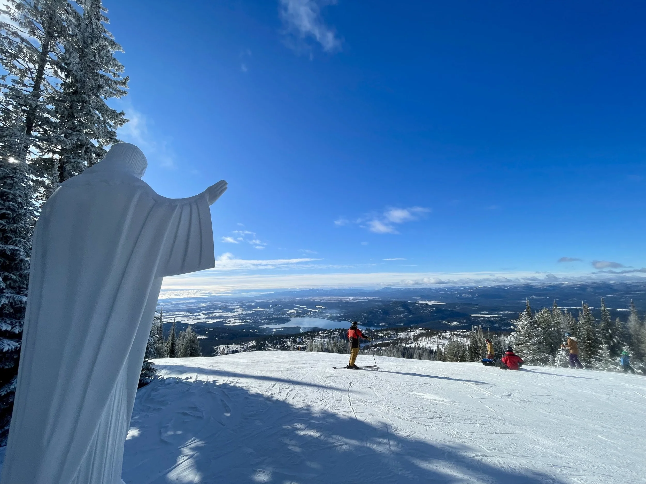 The next morning, we made our way up to go skiing. It was a little weird for there to be a lack of stoke to go skiing. The snow levels have been so low all winter that the general feeling was there was no reason to rush up there in the mornings. Once we got our gear on, the vibe shifted, and it was time to ski! By the time I had put my second ski on, I was 100% back and ready to ski like I had been all year. After making a mandatory stop at the Jesus statue on the mountain, we got after it. My first run felt so good—to go fast, get an edge in the snow, and make some beautiful turns. I was personally taken aback a little bit because I thought the skiing and snow were great! Maybe it was the three months of skiing on the East Coast that changed my perspective, but nonetheless, I had a blast skiing! Last year we rarely skied at places where we had been before, so being at a resort that I know inside and out was radical! Not only the skiing, but knowing the faces and people around the resort that we saw throughout the day made it even better! The best turns of the day came after doing a quick hike up to the radio tower and dropping off the backside into The Green Mile before merging back into Gray Wolf. We also took the opportunity to go ski my dad’s run, Rad Jack, before the day was over. The first day of skiing was just like getting on a bike that allows you to go 60 mph and feel as free as a bird! That night, Craig, Amity, and I stopped by the new Taco Tuesday event at the VFW, which I have never seen that bar so busy on a Tuesday!! Tacos were good and cheap! Afterwards we went to the Remington for trivia night and met up with some friends I was excited to see. Bobby, Mike, Fio, and I did not do that well in trivia, but we did beat Craig, Amy, Tori, and Shane!