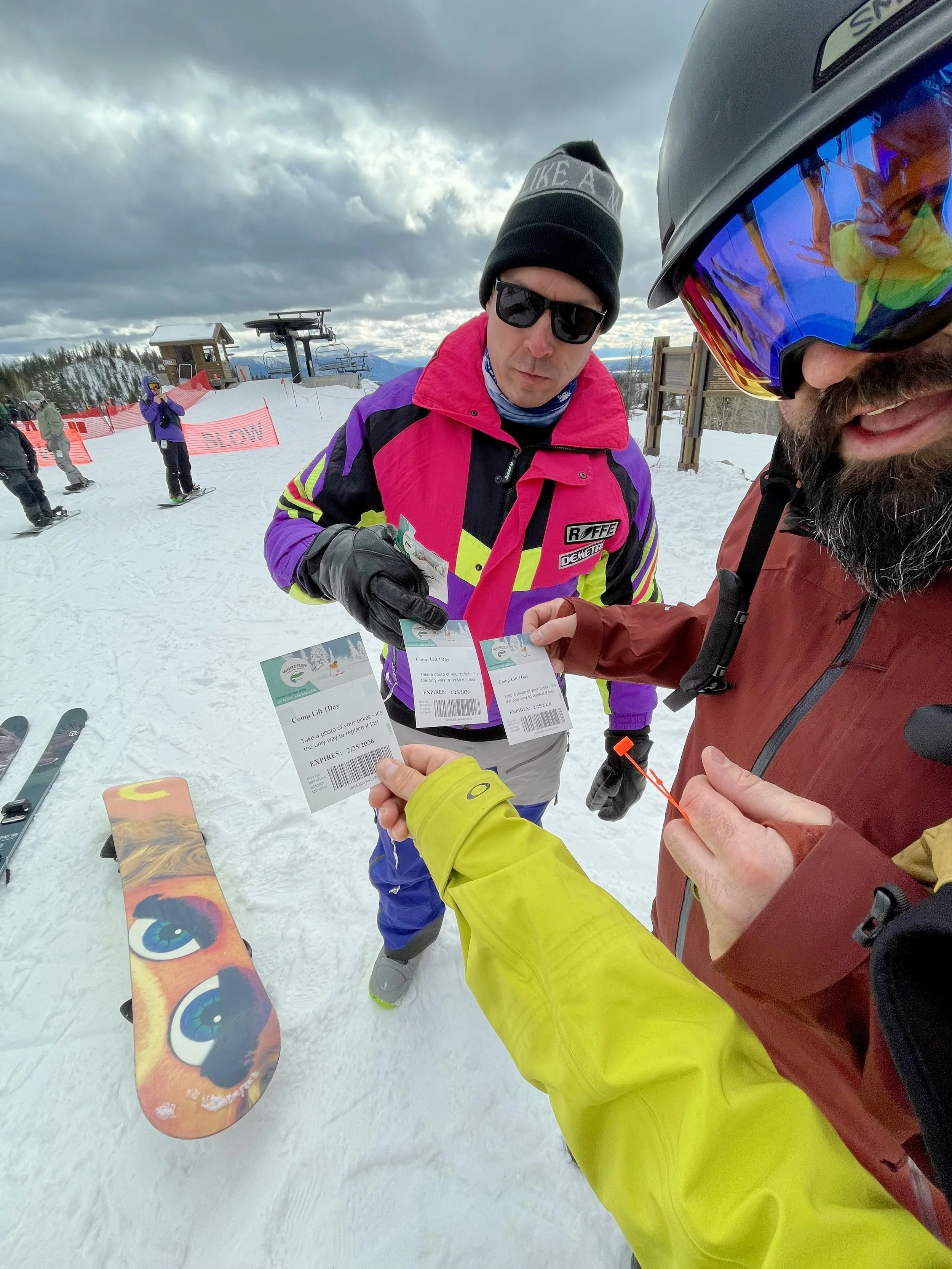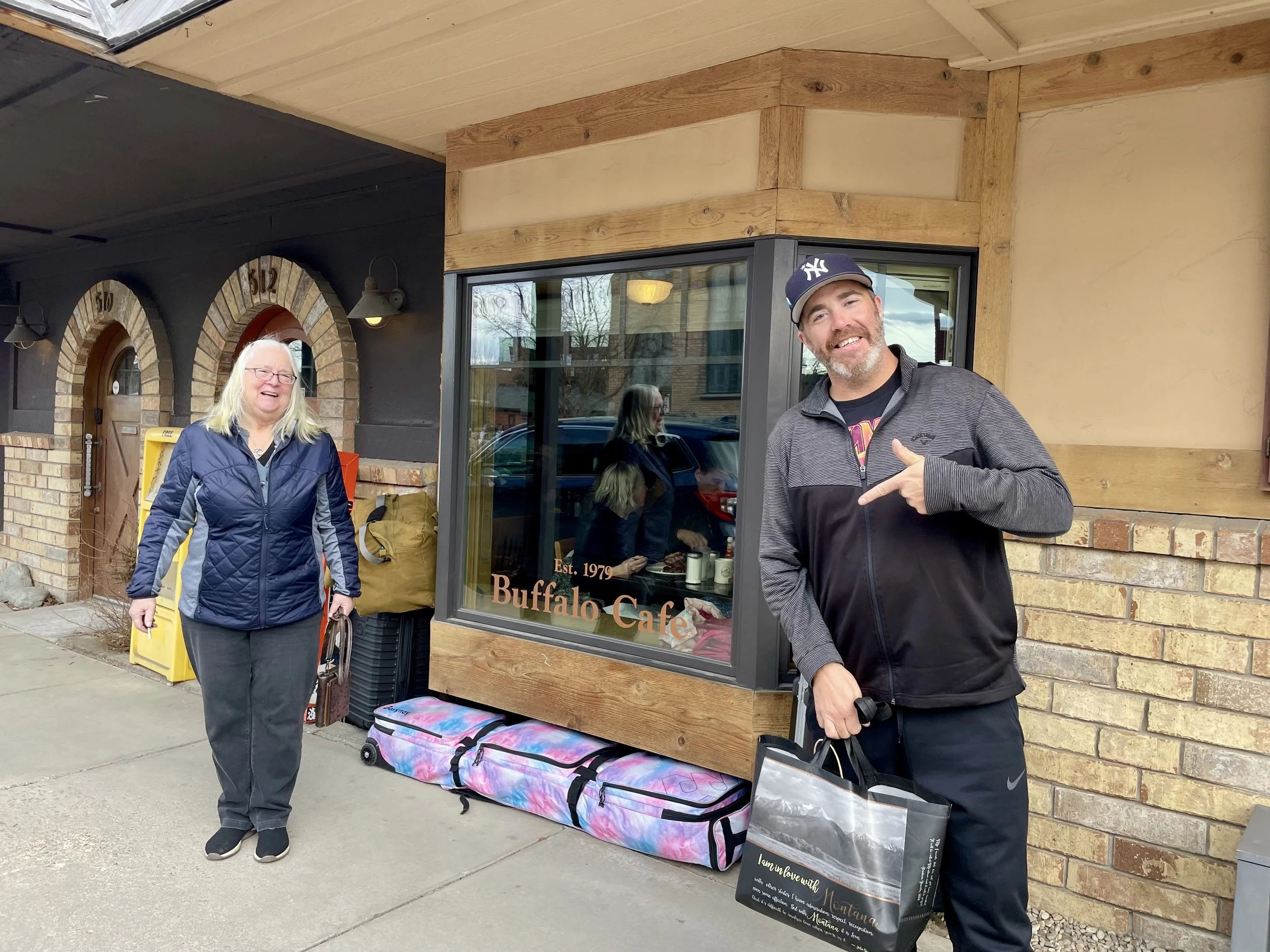 It was truly amazing to get a quick trip up to Montana, see family and friends, as well as rip up the mountain! It’s one of those places that is like hopping back on a bike after a long time away. It feels too natural and welcoming! I am grateful for all of the people I got to see while I was there, everyone who made it to the surprise party and everyone who conspired together to give me my first (and hopefully only) Frabert Award! It was a fantastic trip! The last activity in my plans was breakfast with my mom at the Buffalo before my flight. This has become our tradition when I am in town. This time, we had a couple of friends join us. Brian and Ashley Seefeldt were not able to hang out during the week, outside of seeing Ashley at Frabert, so it was only proper to have them join my mom and me. Brian hooked me up with some fresh gear from Willie’s Distillery, along with the first couple of mini bottles of their new tequila to make it this far north in the state. I am proud to have it and excited to bring it with me down to the desert. As we walked out we saw someone’s ski bag outside of the restaurant. We all laughed at the idea of me taking this bag too. As all great trips go, it has to come to an end. The good thing is, all I need to do is fly back to Mesa, drive the short distance down to Tucson, and the next day is my actual 40th birthday, and I get to celebrate it with my wife, AMITY!!! I would be a liar if I said we didn’t have something big planned next! Thanks again, Montana! You make a man feel so welcome and stoked on life! Until the next time we are both back in Montana this spring, Live Rad!