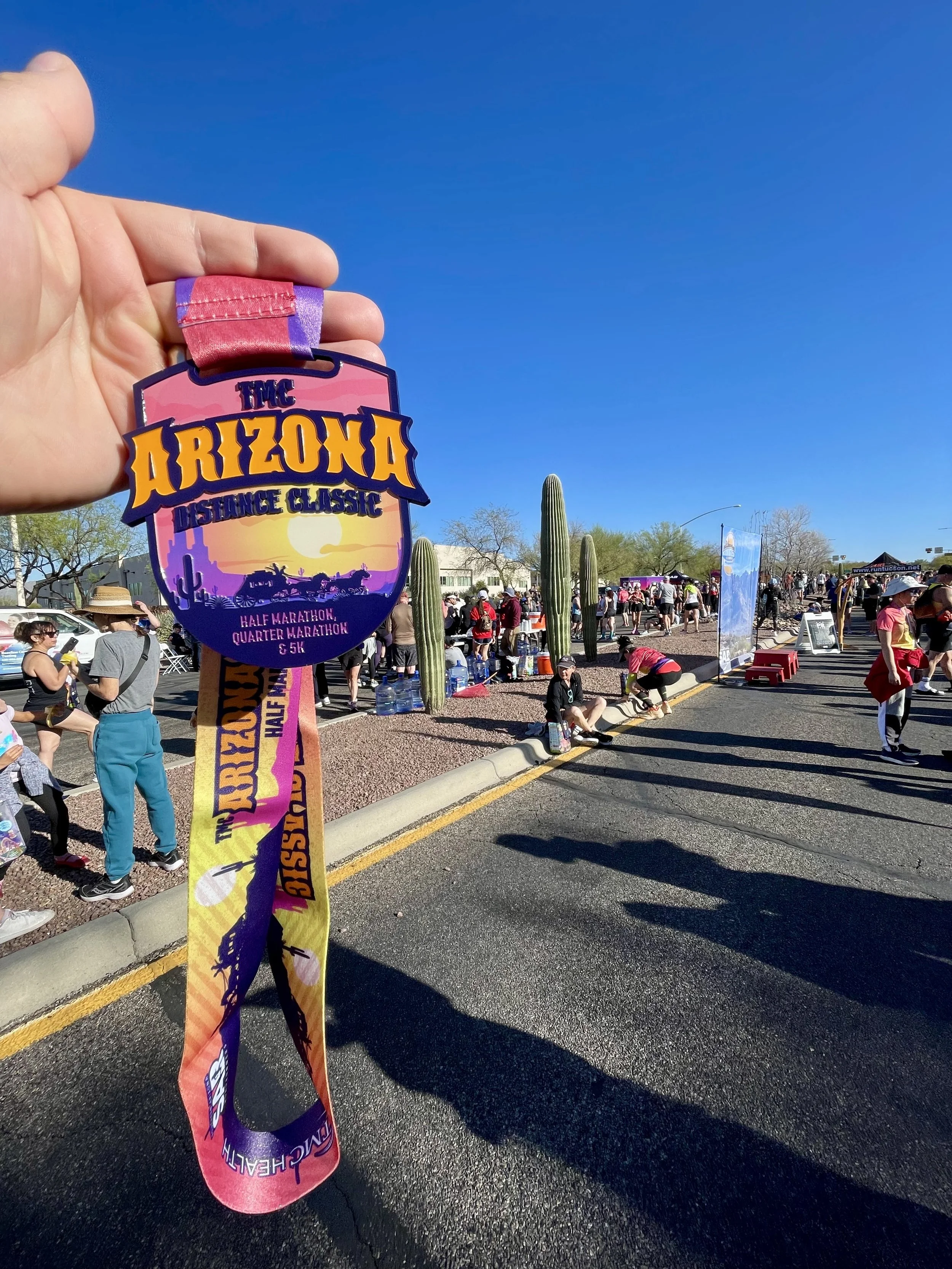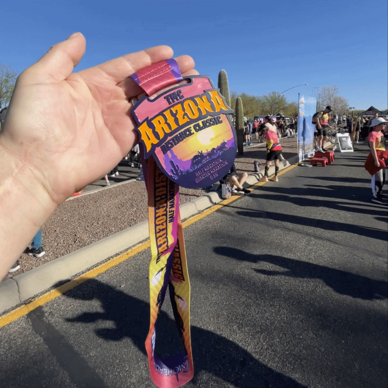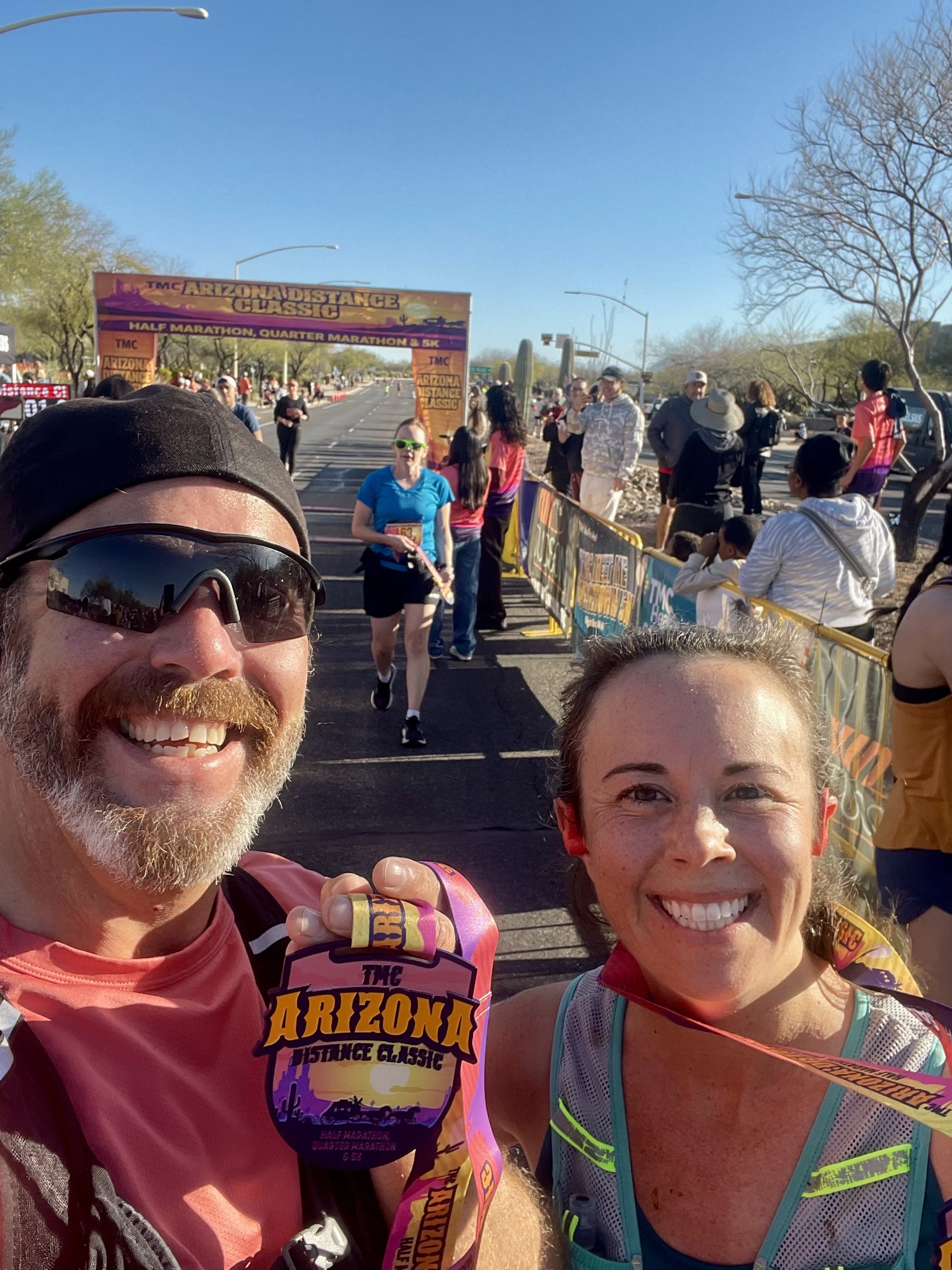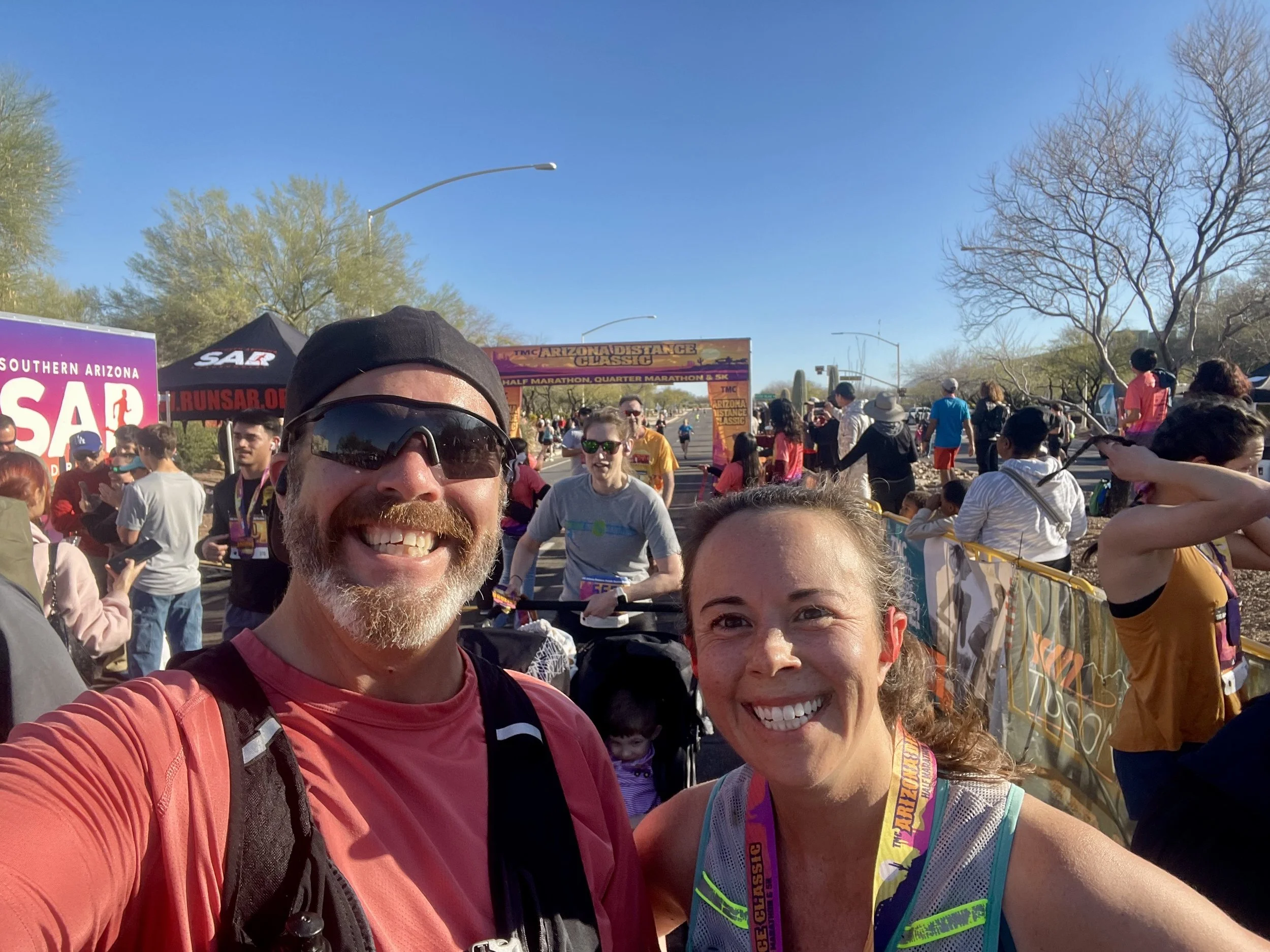 On the day of the race, it was really nice to wake up in our own bed. Most of our races recently have been destination events on the other side of the state. We were able to get to the course with enough time for a quick bathroom break and make our way to the starting line. We gave each other our last high fives and set out on our runs. I had recently eaten some fish that was not properly refrigerated, so we were both very worried about my stomach this weekend. All in all, I did well, but I did have to make more than one stop at the bathroom on the course. I think it was more in my mind than anything else. This meant Amity and I leapfrogged a couple of times on the run. We last passed each other with only a little over a mile left in the race. Amity ran a strong and good race; I was just barely faster. At the end, we were both whooped. Amity looked at me and said, “I know who won the race today.” I was like, how and who? She ended up explaining to me that the person in front was a guy who went to high school in Whitefish, and she knew his face from the Tucson running club he now runs. She had seen him well ahead of the second-place runner when we first began to pass runners headed back toward the start. I laughed and immediately knew who she was talking about: Jose Delgato. We looked around for him at the finish area but had no luck. He finished a solid hour before us and was probably long gone. We wrapped the day up with some ice cream and some hard chilling. We were both happy with our outcomes and feel like that was one of the more difficult courses we have done yet. We both feel like we need a strong break from distance running for now. With this run, we have now completed the 9th half-marathon in Amity’s 9th contract location. Who knows where the next one will be. That’s part of the fun! Living Rad is full of surprises!