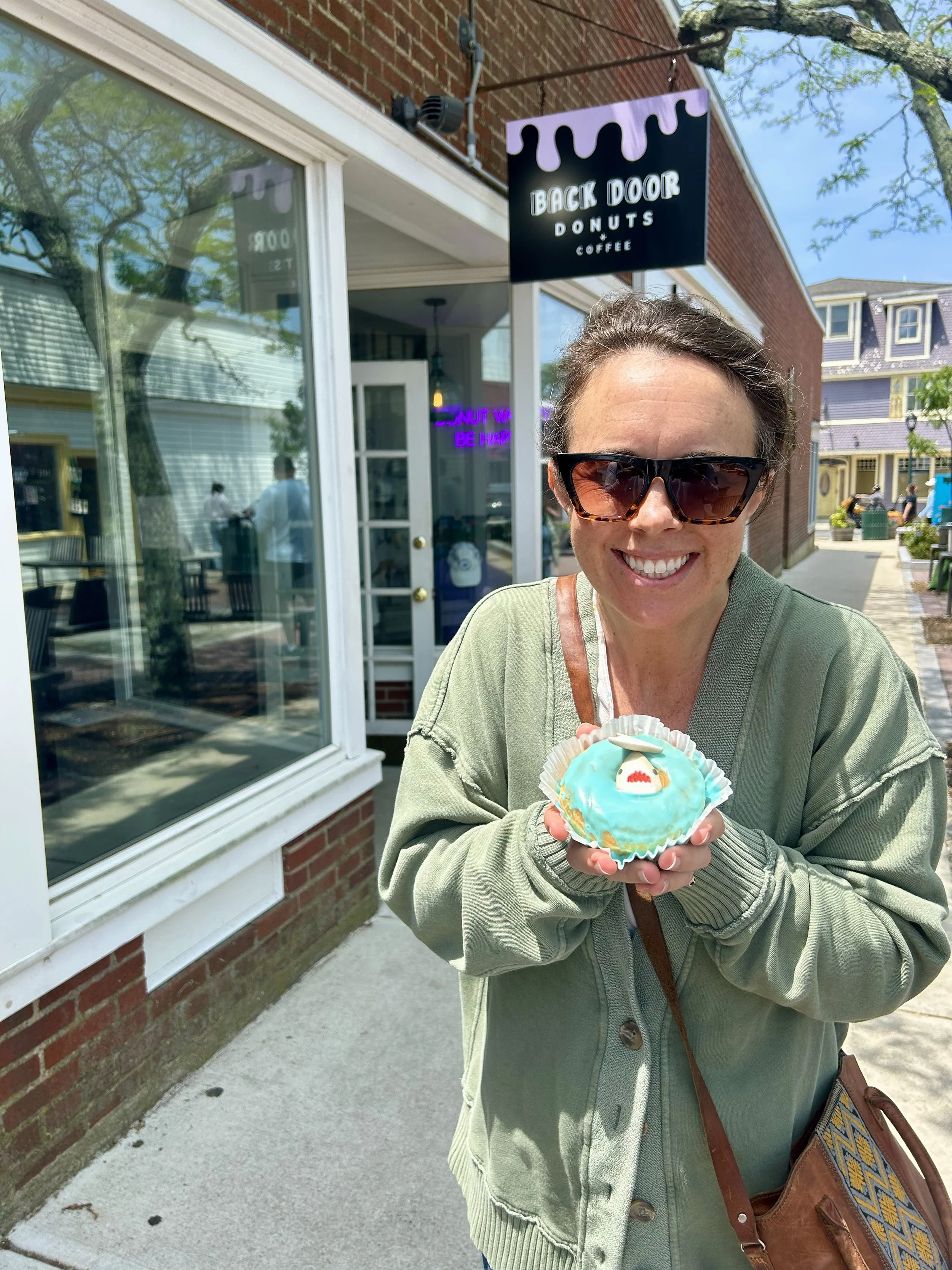 Martha’s Vineyard is slightly larger than Nantucket, with multiple harbor towns and several beaches scattered across the island. Our ferry dropped us off in Oak Bluffs, a really cute tourist town. After leaving the boat, we wandered through town for a bit. We stopped for coffee and a doughnut at Back Door Donuts. We had only planned on grabbing coffee, but when we saw the shark-shaped doughnut, we couldn’t say no. It was almost too cute to eat!