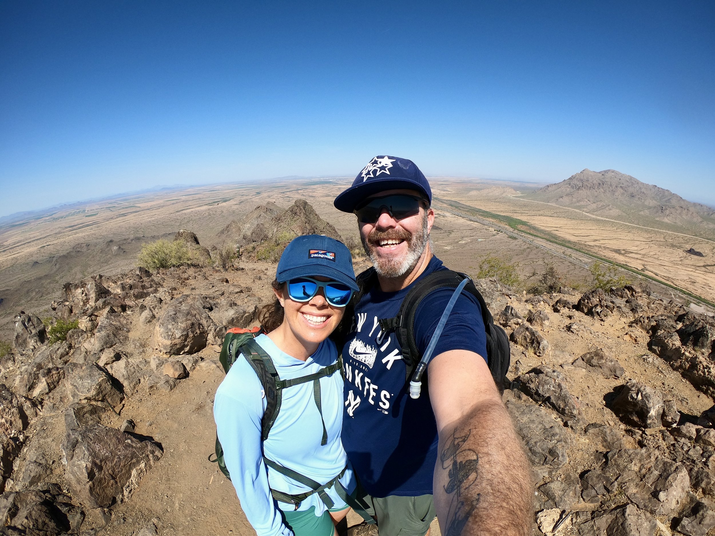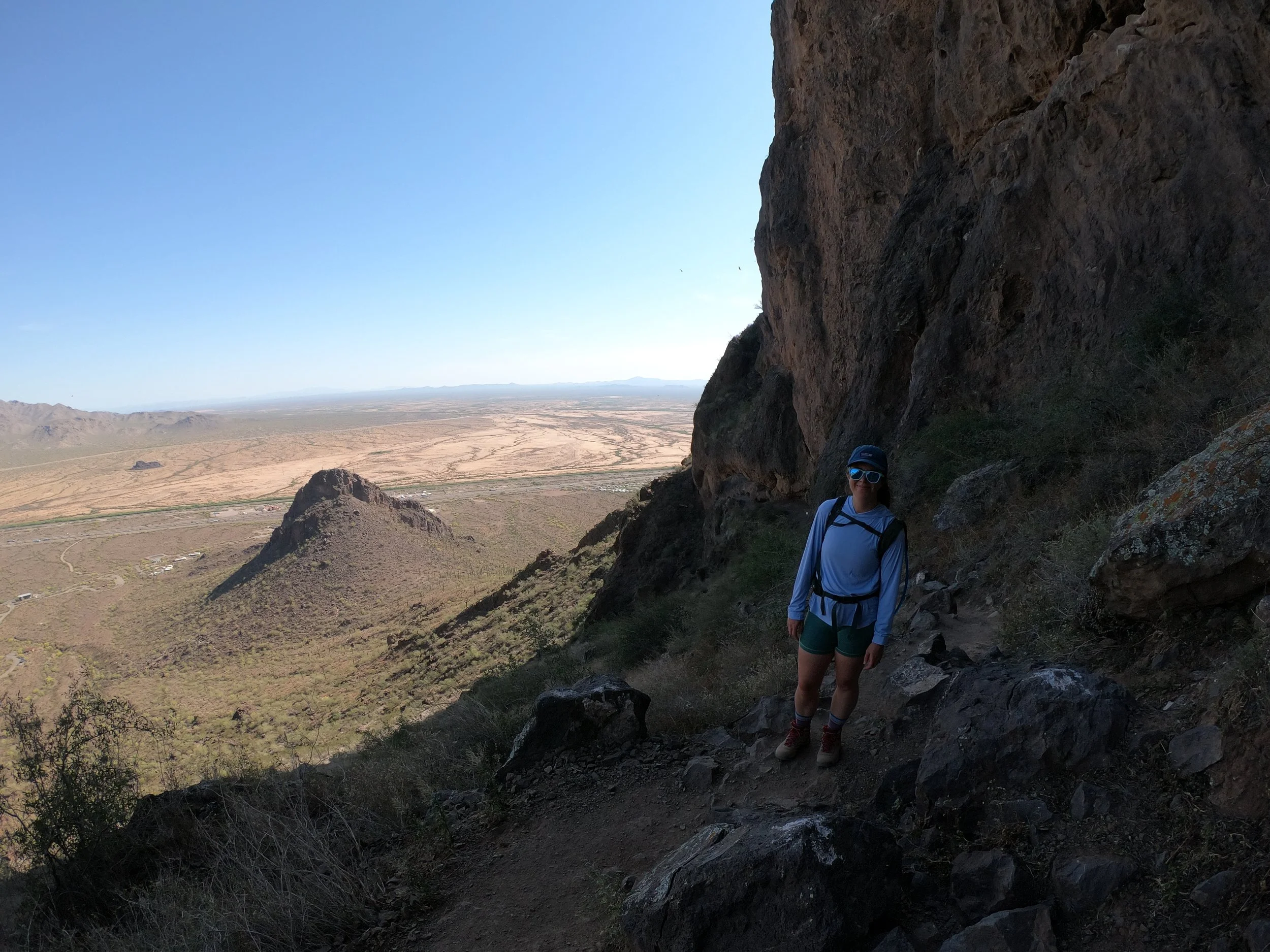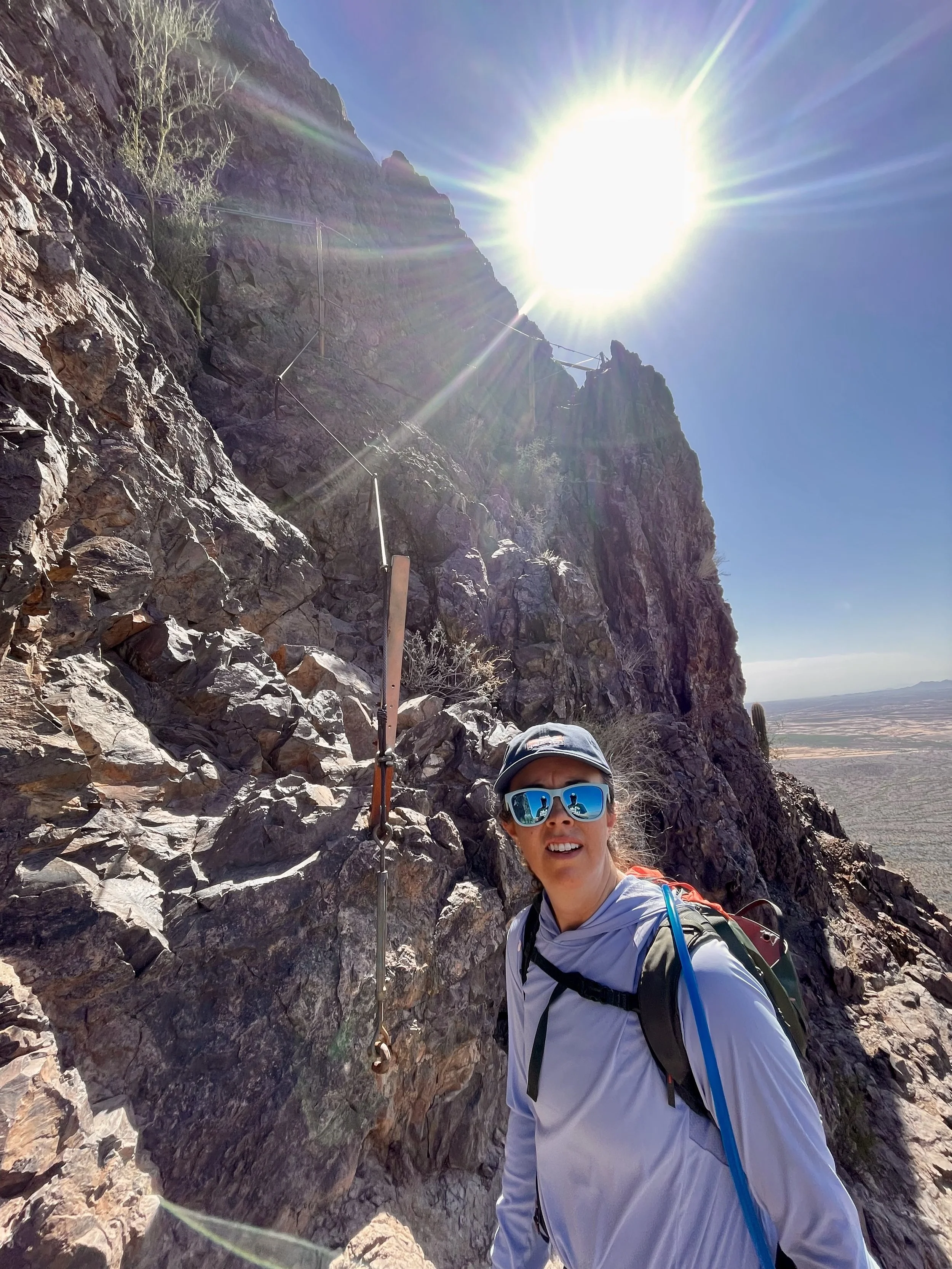 We have said this before, hiking in Arizona hits differently! There are so many variables unique to this area that make it more rugged, beautiful and inspiring. There are no fall zones, mostly because of the risk of falling into cacti. The mountains are very rugged in southern Arizona. They have an exposure element that is more akin to high alpine in the rocky mountains, than desert hiking. Even some of the smallest peak jet straight up from the valley floor with large cliffs, steep inclines and a kind of exposed rock that will tear your skin up! One of these peaks is called Picacho Peak. It sits about an hour north of Tucson, and it right off the interstate connecting Tucson to Phoenix. The valley floor around the peak sits at 1,891’ of elevation, while the peak itself goes up to 3,374’ above sea level. This little mountain packs some serious punch and has some of the most hair rising hiking lines we have done. With only 1.5 miles to get to the top, we are very excited to check this one off the book!