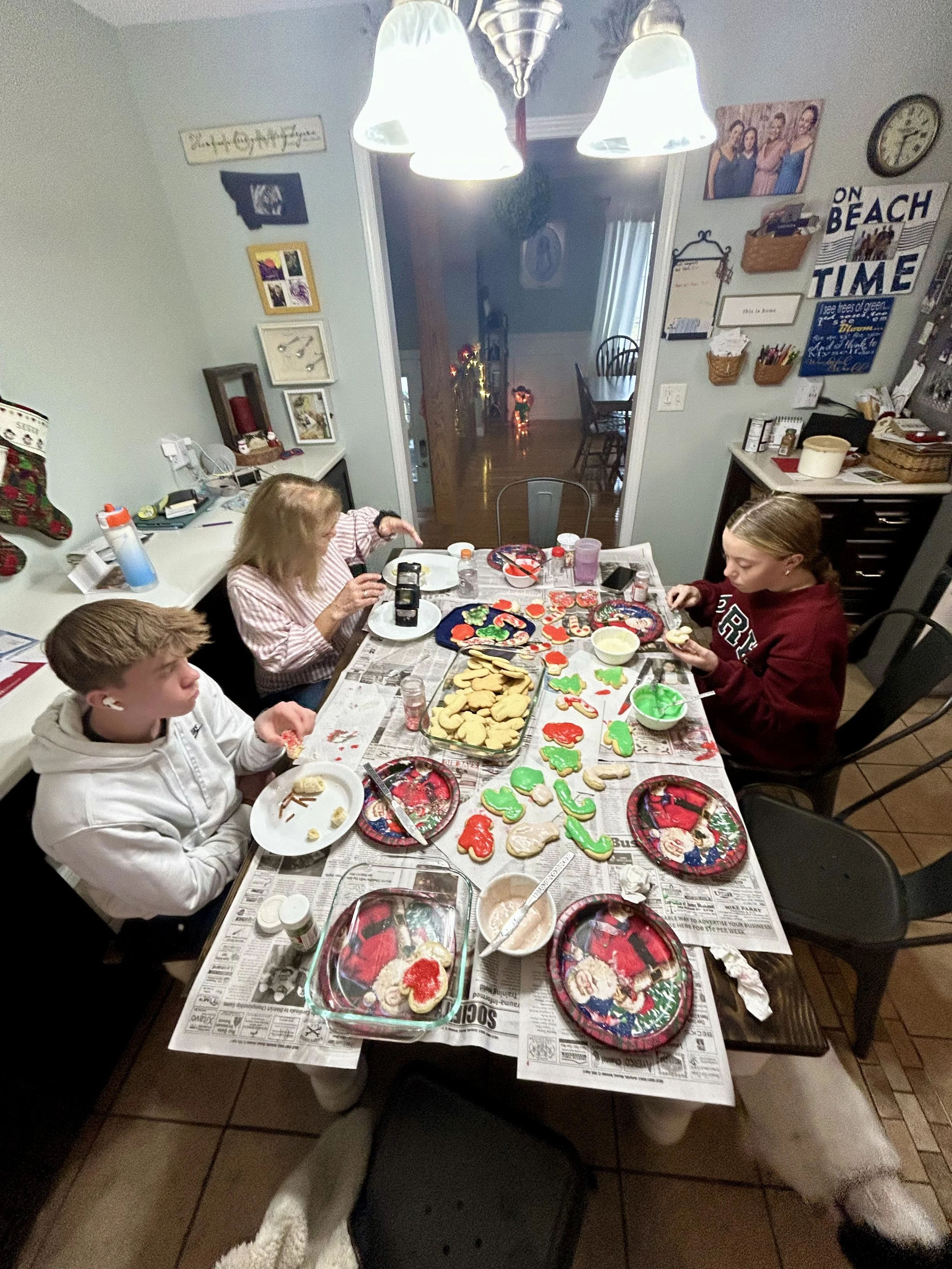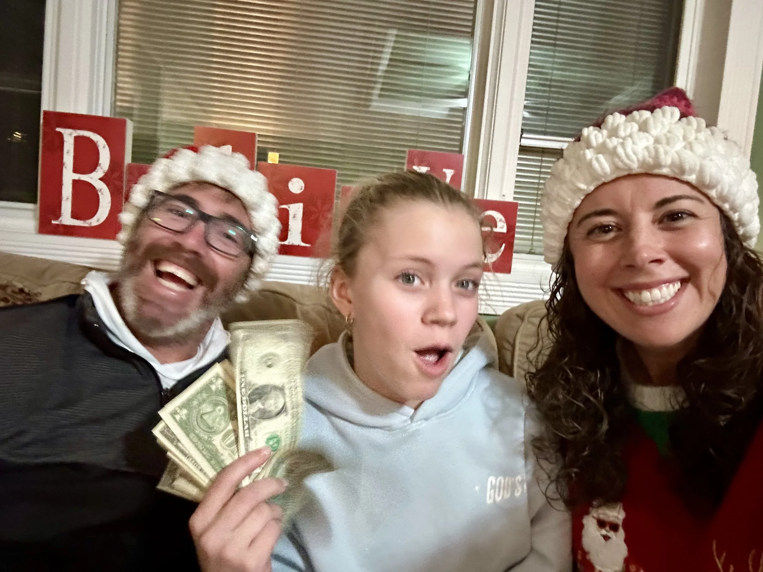 Once in Kirksville, the marathon really got going! We had a room full of gifts we had shipped to Kirksville that we needed to wrap, and we helped Julie finish some gift shopping for the kiddos. We met up with Mike for a nice afternoon walk and spent the rest of the night chilling, knowing that it was going to be the only chance we got to do this while we were there. After a long night of flying and driving, and only getting a couple hours of sleep, we were happy to crash out as early as we could. The next day, we both got a little run in and enjoyed another nice walk with Mike. We then met back up with him over at Woody’s for a couple beers. It wouldn’t have been a trip to Kirksville if I didn’t make a stop at Woody’s to see our Kirksville bar friends and the owner, Dan! They love to hear our stories, and we have a good time with it too. While I was at Woody’s, Amity was with the kids and her mom decorating Christmas cookies. Christmas Eve in Kirksville is always at Rick & Lisa’s house for their annual holiday celebration with Amity’s dad’s side of the family. Mike, and his freshly new wife, Karen, drove with us. Lisa loves Christmas, so spending some holiday time with her is always a good time. We had a nice gift exchange and played some Left, Right, Center. This is a fun dice game where you can win some cash! A couple years ago, I took the lot all night. This year, the kids were the big winners! We spent that night over at Mike and Karen’s house. It was a great way to spend Christmas Eve with the family!